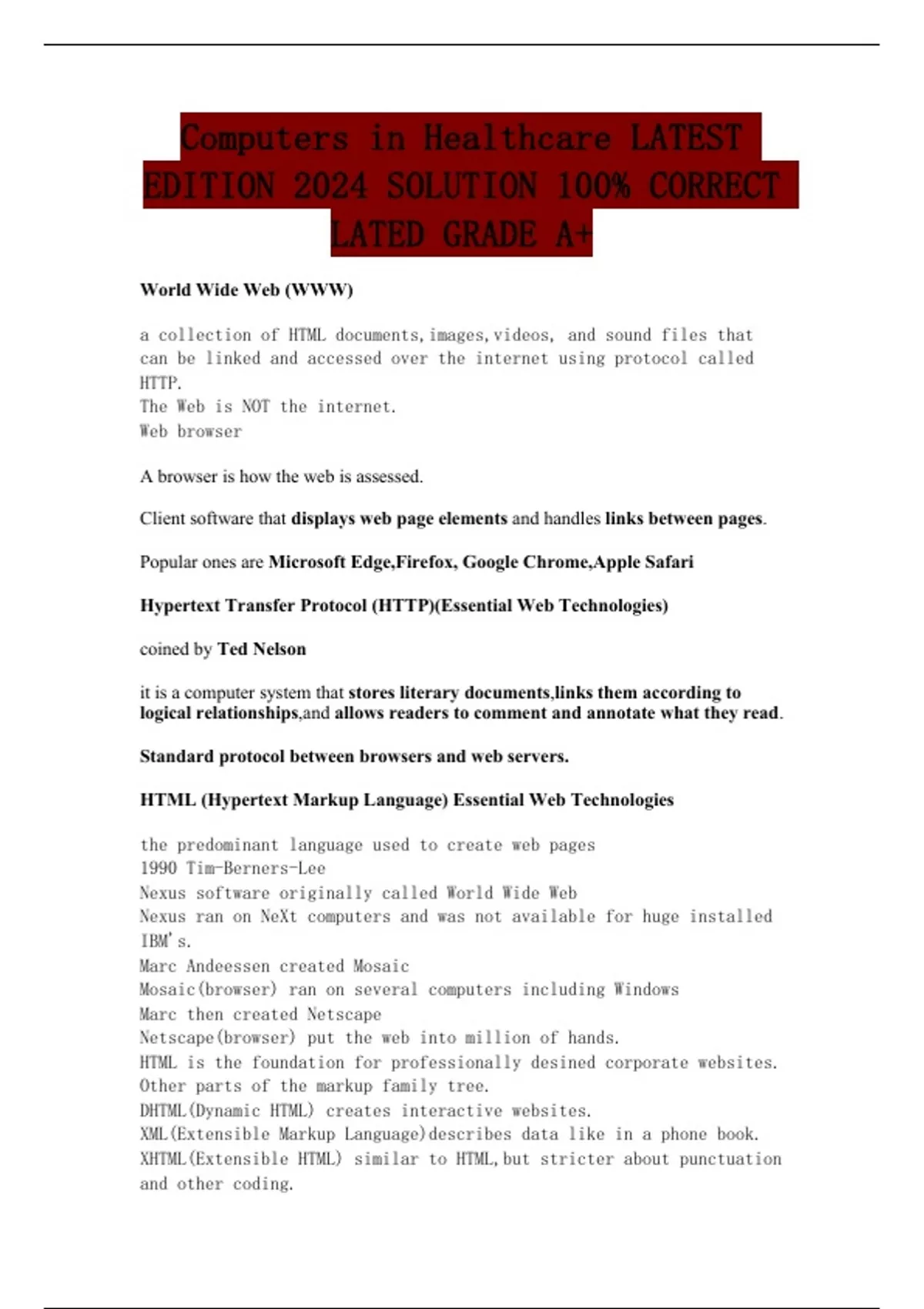 Computers in Healthcare LATEST EDITION 2024 SOLUTION 100% CORRECT LATED GRADE A+