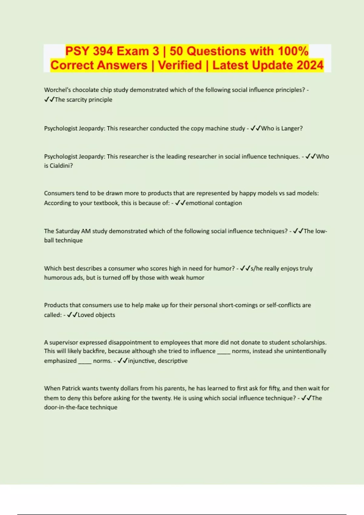 PSY 394 Exam 3 | 50 Questions with 100% Correct Answers | Verified | Latest Update 2024
