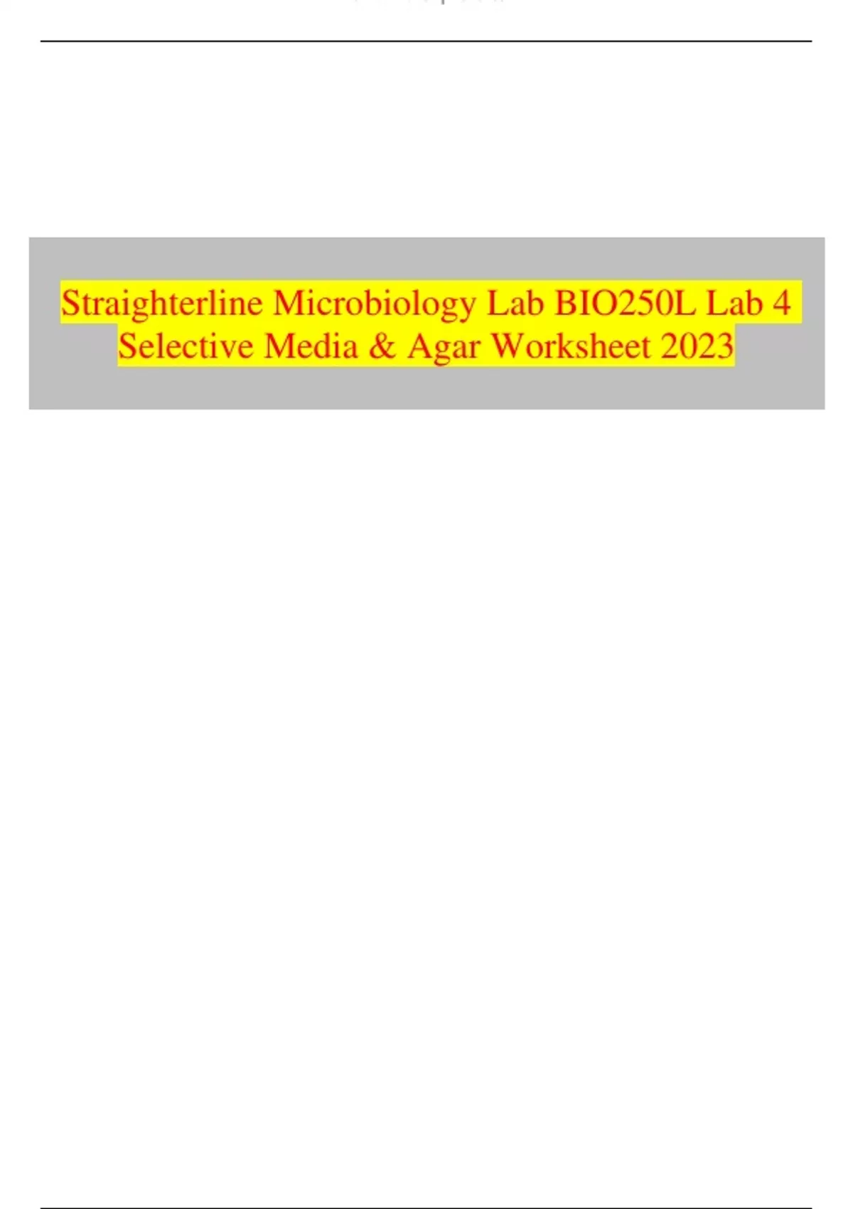 Straighterline Microbiology Lab BIO250L Lab 4 Selective Media & Agar Worksheet 2023 |Questions and Answers | 100% solved