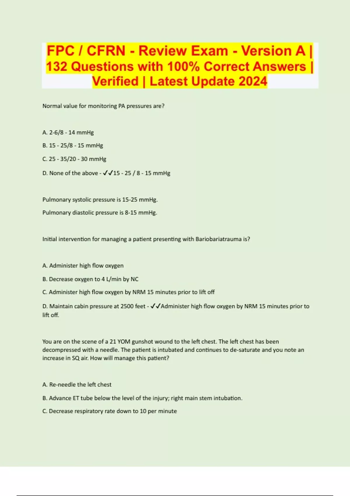 FPC / CFRN - Review Exam - Version A | 132 Questions with 100% Correct Answers | Verified | Latest Update 2024