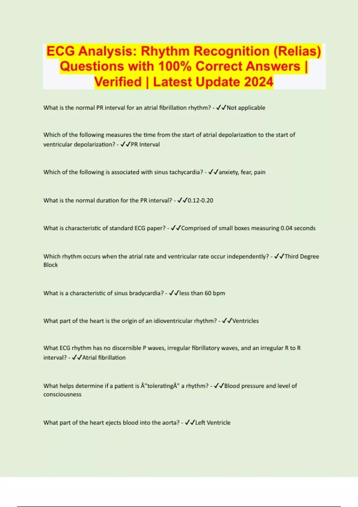 ECG Analysis: Rhythm Recognition (Relias) Questions with 100% Correct Answers | Verified | Latest Update 2024