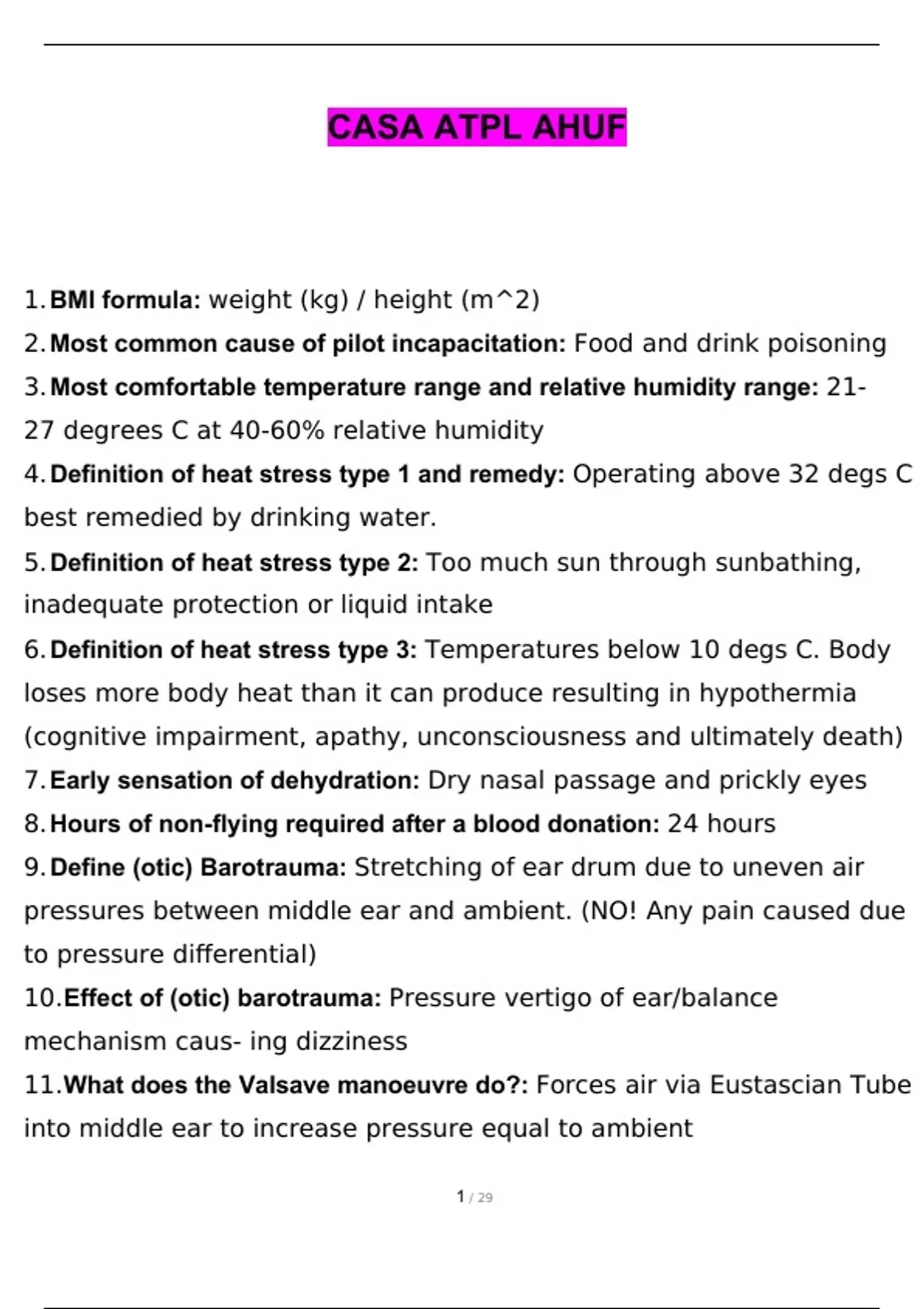 CASA ATPL AHUF Questions and Answers 2024 with complete solution