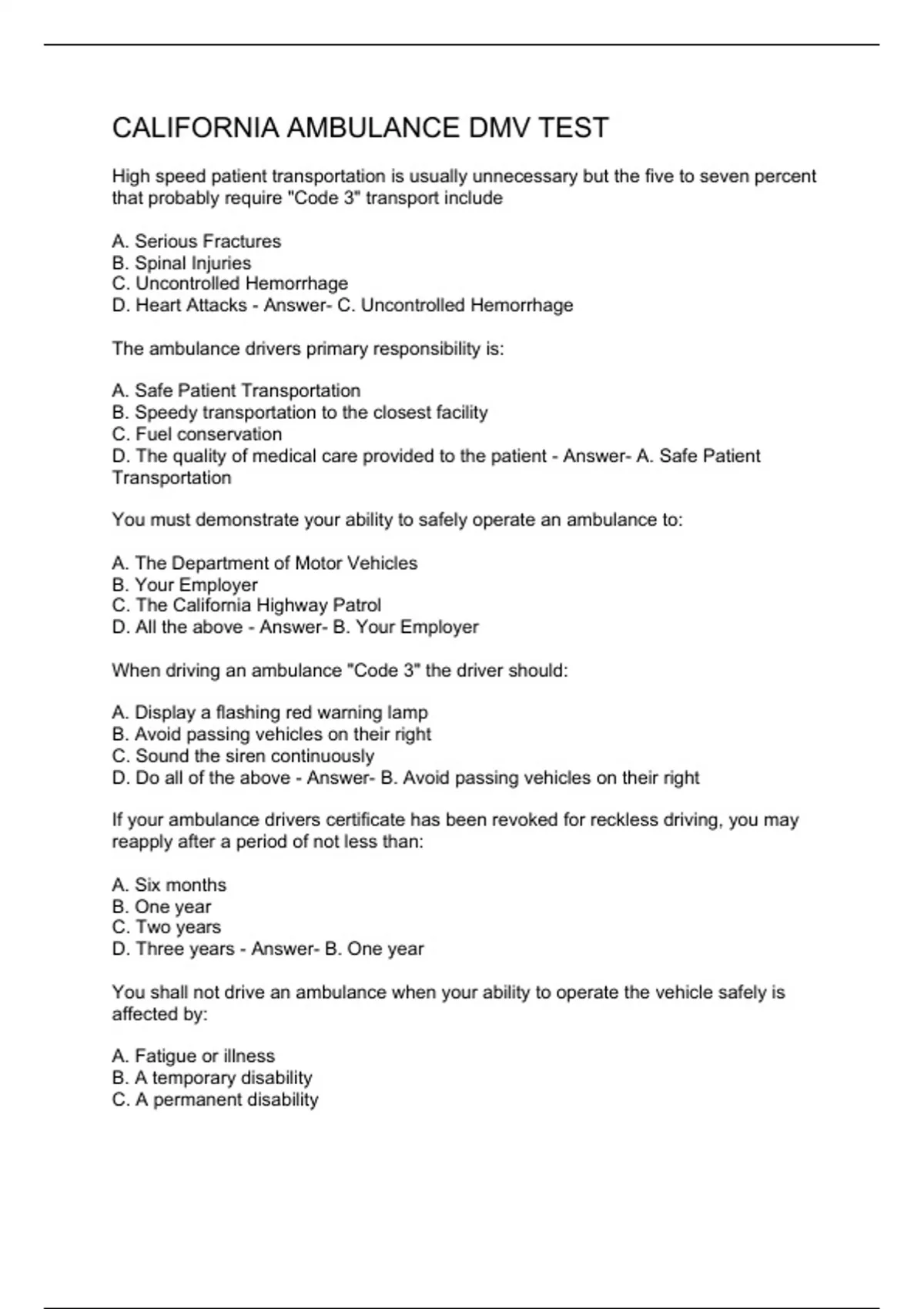 CALIFORNIA AMBULANCE DMV EXAM/AMBULANCE DRIVER TEST CA/CALIFORNIA AMBULANCE DMV TEST/CALIFORNIA AMBULANCE DRIVER S LICENSE/CA DMV AMBULANCE TEST/CALIFORNIA AMBULANCE DRIVER CERTIFICATE/CA AMBULANCE DRIVER TEST/AMBULANCE DRIVERS TEST/AMBULANCE DRIVING TEST