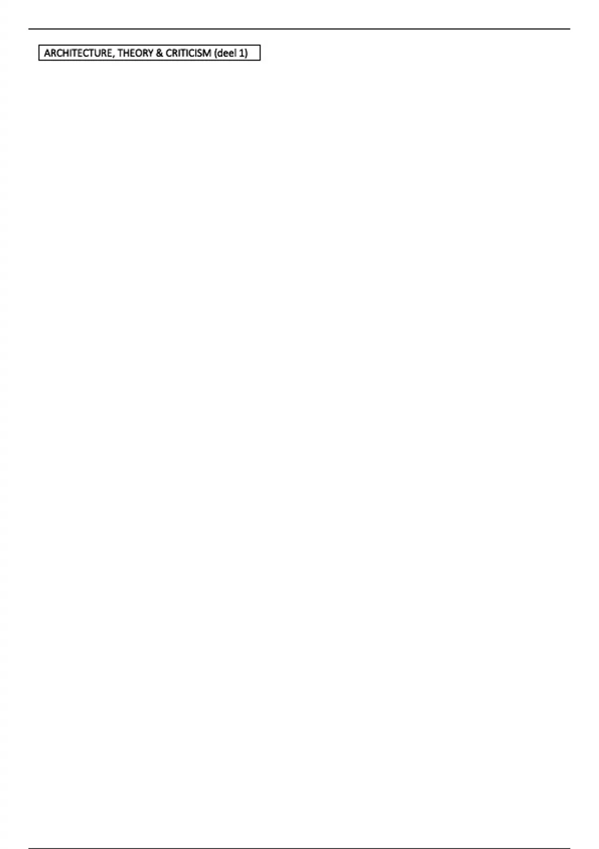 This is a summary of the course Architecture, Theory & Criticism (Deel 1, Veronique P). The summary is written in English, since the course is taught in English, as well as the exam. It is a combination of notes and powerpoint.
