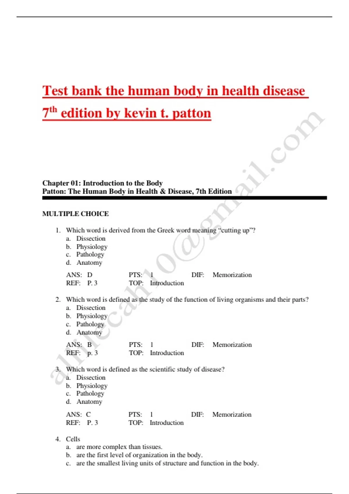 Test bank the human body in health disease 7th edition by kevin t. patton Latest update