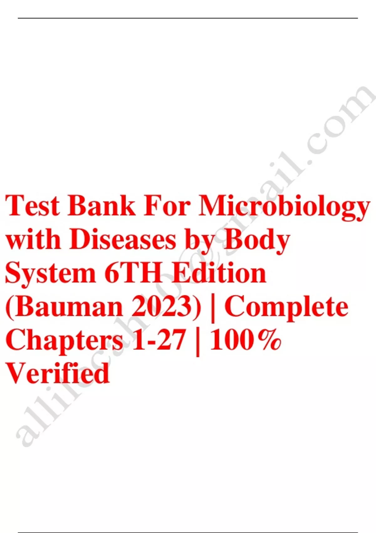 Test bank for microbiology with diseases by body system 6th edition bauman Latest update