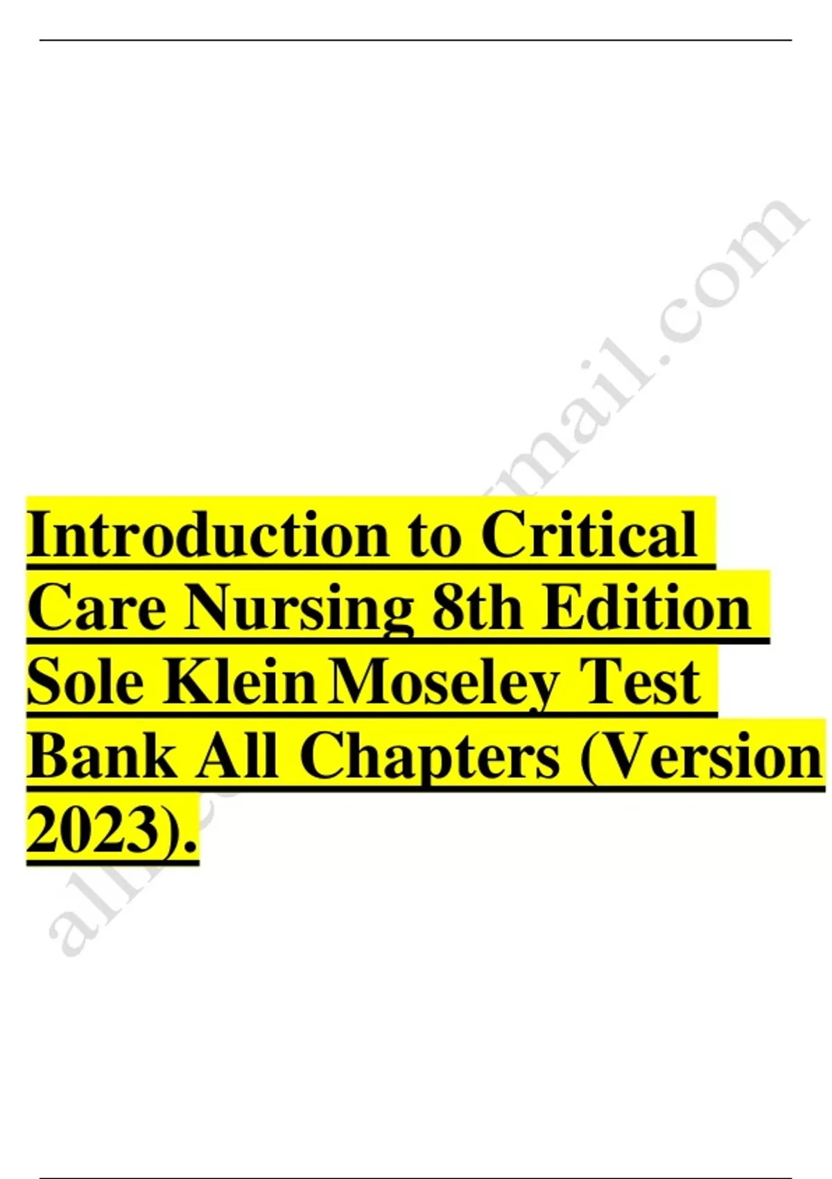 Test bank for introduction to critical care nursing 8th edition sole klein moseley Latest update