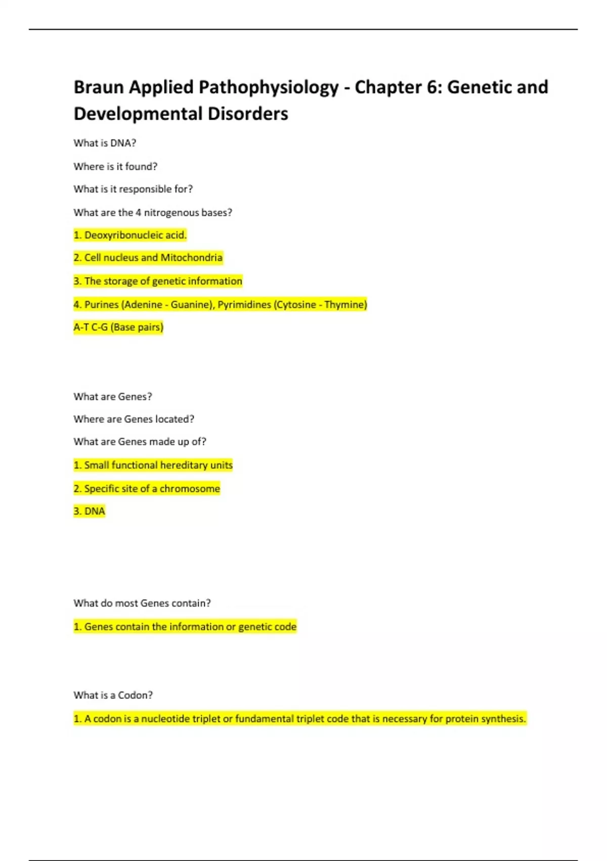 Braun Applied Pathophysiology - Chapter 6: Genetic and Developmental Disorders Download To Score A+