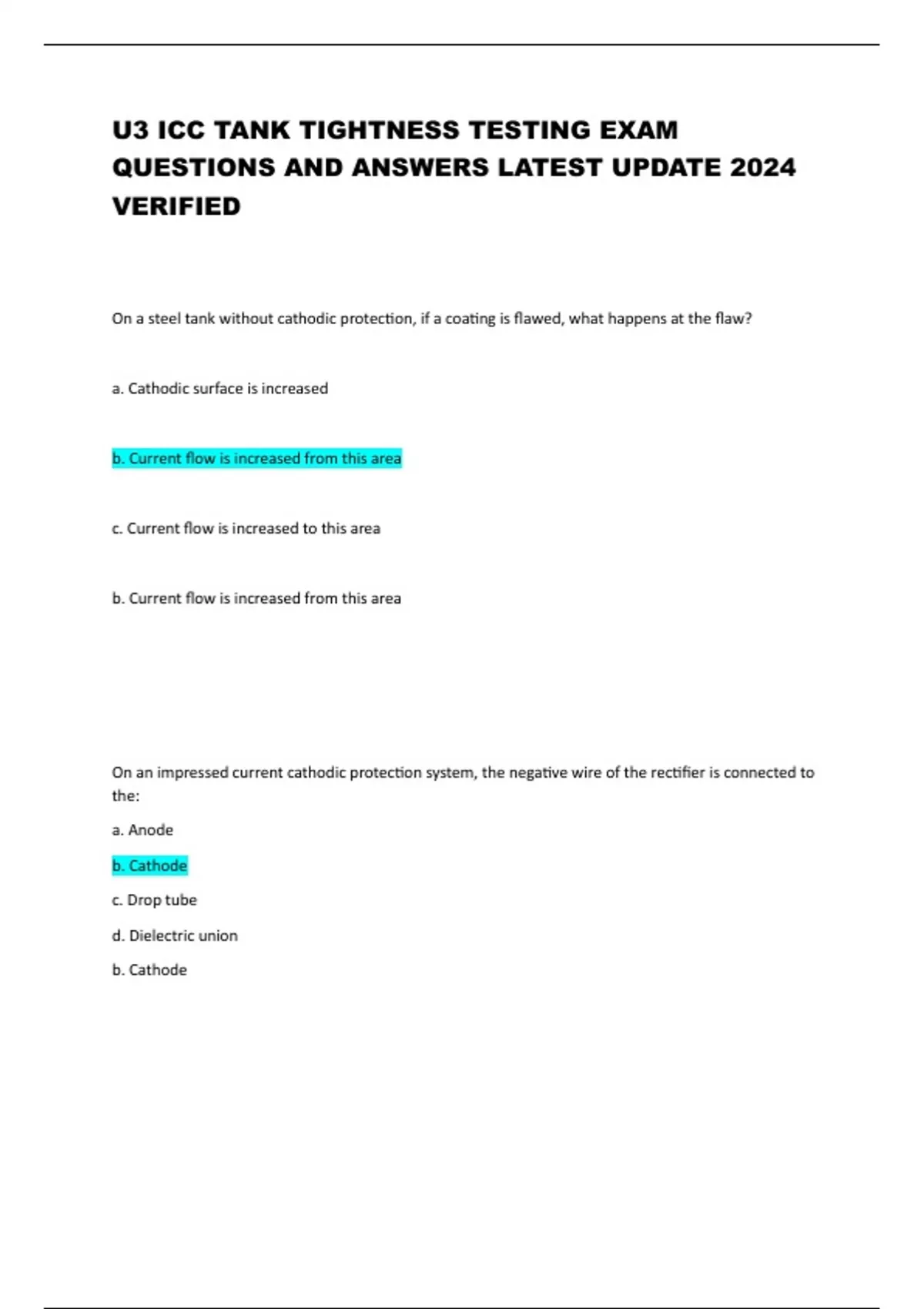 U3 ICC TANK TIGHTNESS TESTING EXAM QUESTIONS AND ANSWERS LATEST UPDATE 2024 VERIFIED