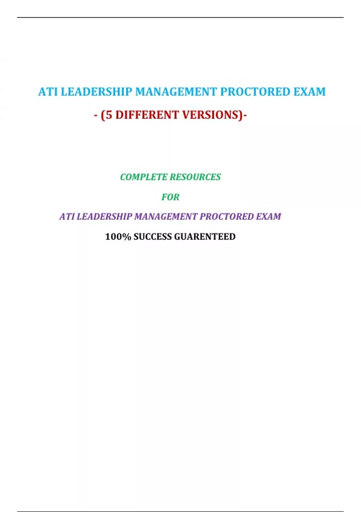 Summary ATI LEADERSHIP MANAGEMENT PROCTORED EXAM (5 VERSIONS,NGN)-2023