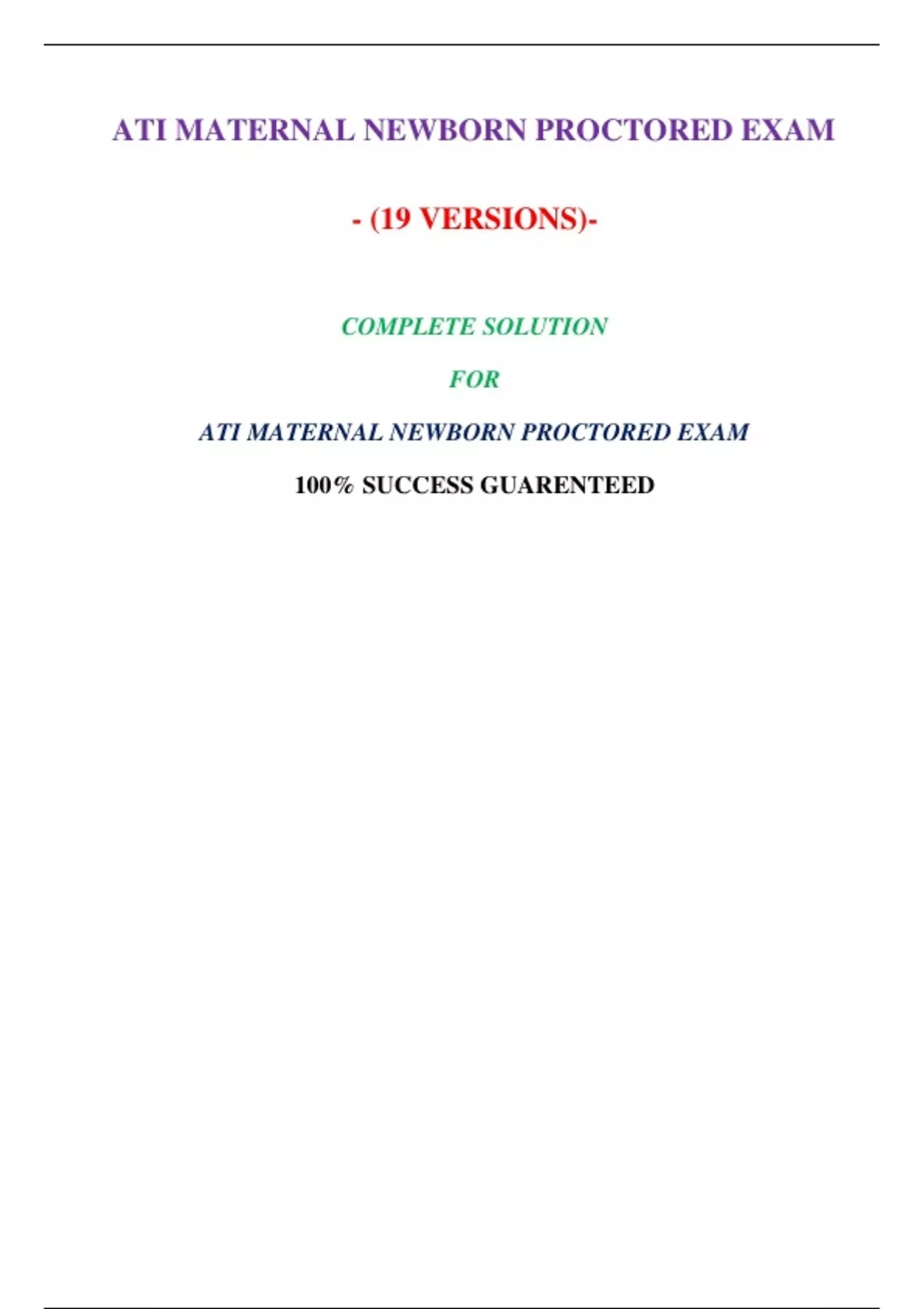 ATI MATERNAL NEWBORN PROCTORED EXAM ( 19 VERSIONS,NGN)-2023