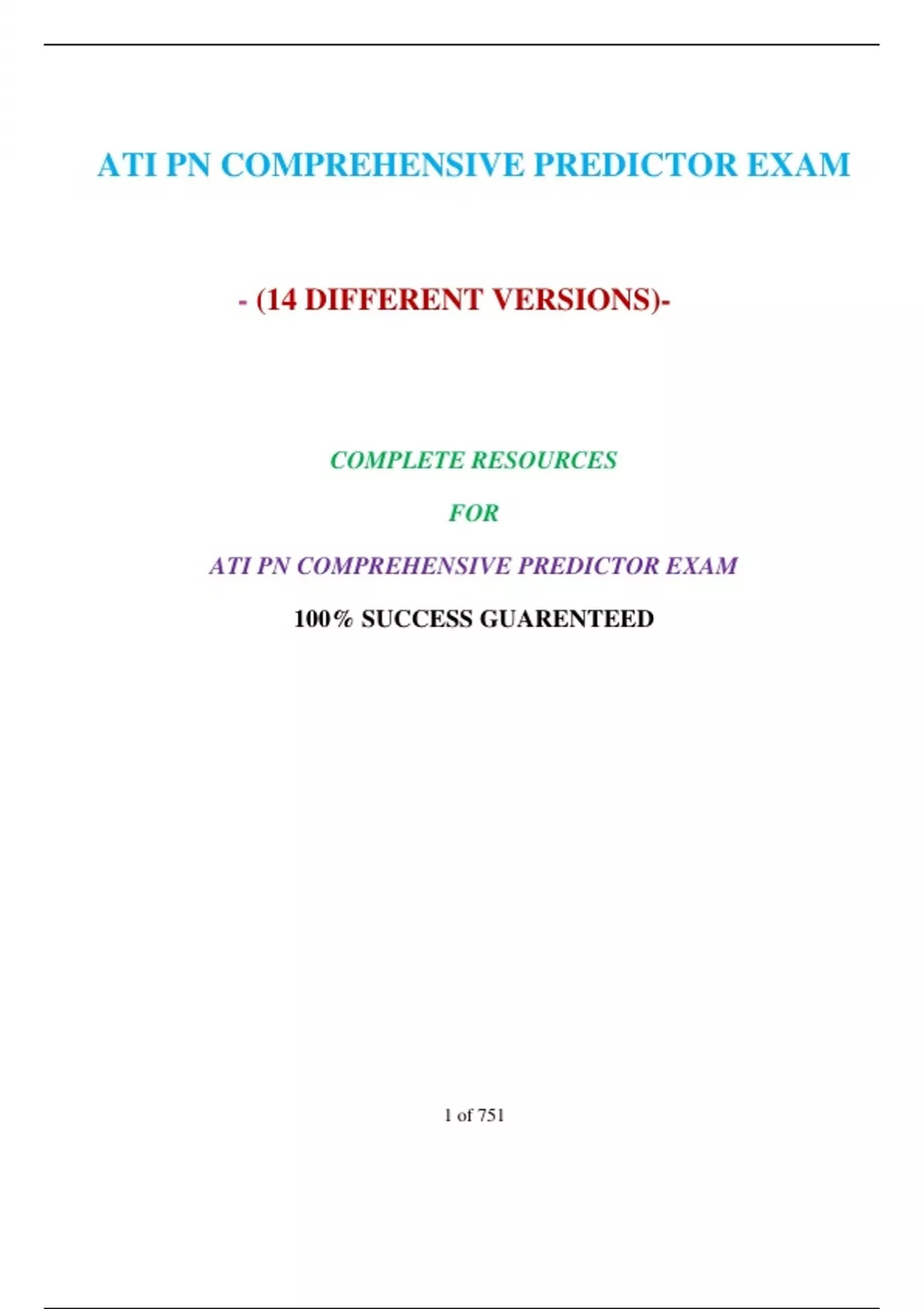 Summary ATI PN COMPREHENSIVE PREDICTOR EXAM (14 VERSIONS,NGN)-2023