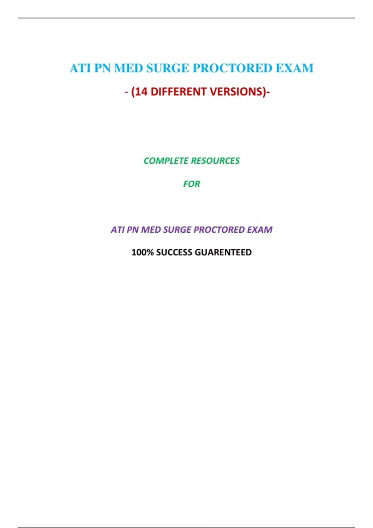 Summary ATI PN MED SURGE PROCTORED EXAM (14 VERSIONS,NGN)-2023