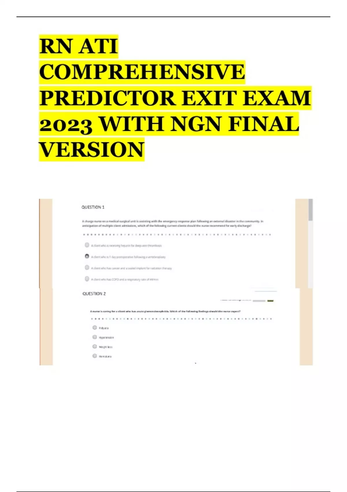 RN ATI COMPREHENSIVE PREDICTOR EXIT EXAM 2023 WITH NGN FINAL VERSION