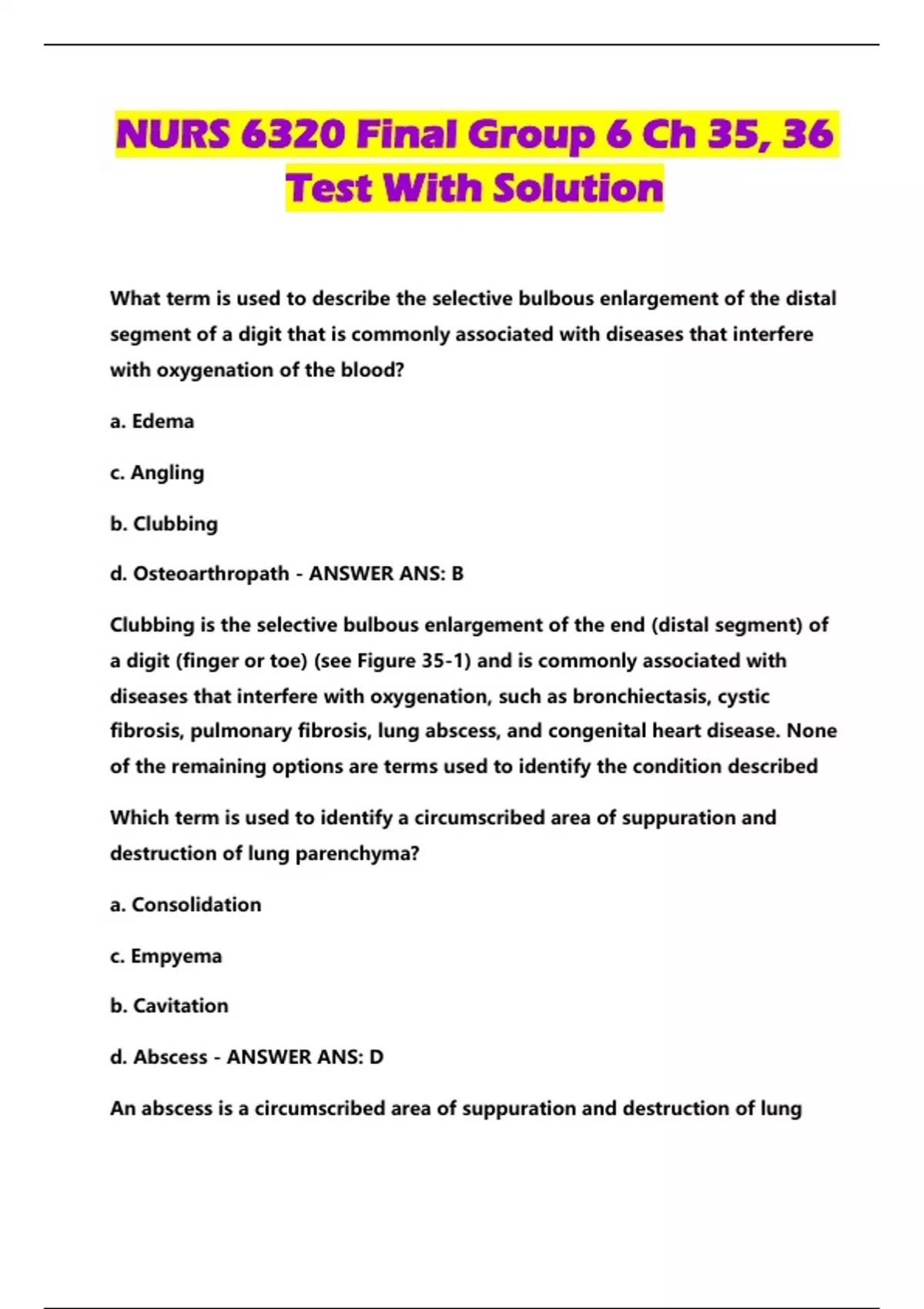 NURS 6320 Final Group 6 Ch 35, 36 Test With Solution...