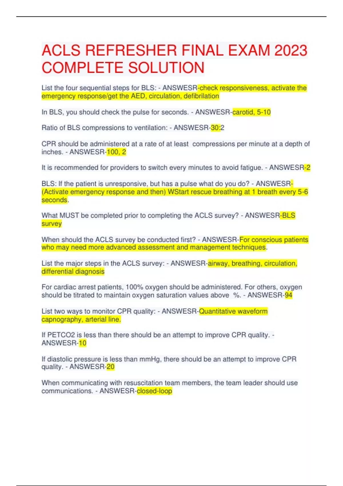 What MUST be completed prior to completing the ACLS survey? - ANSWESR-BLS