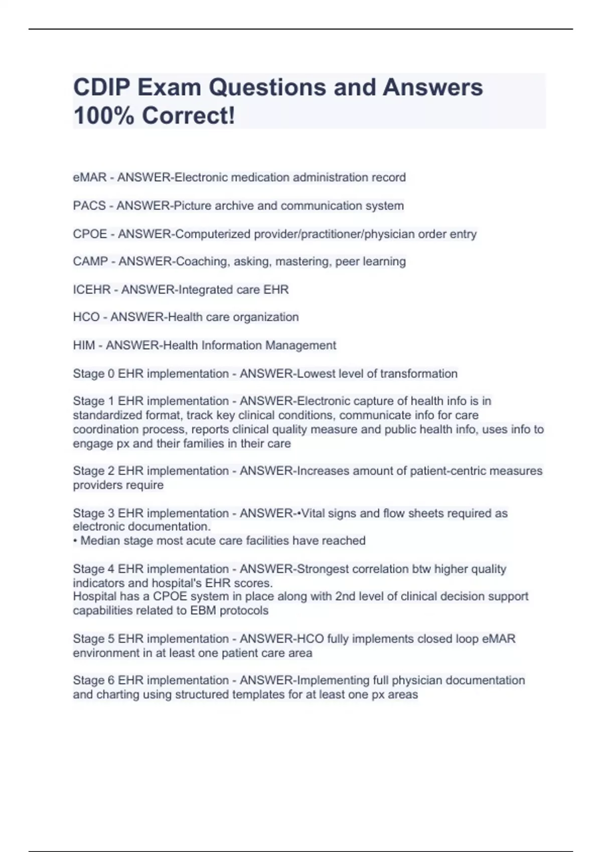 CDIP Exam Questions and Answers 100% Correct!