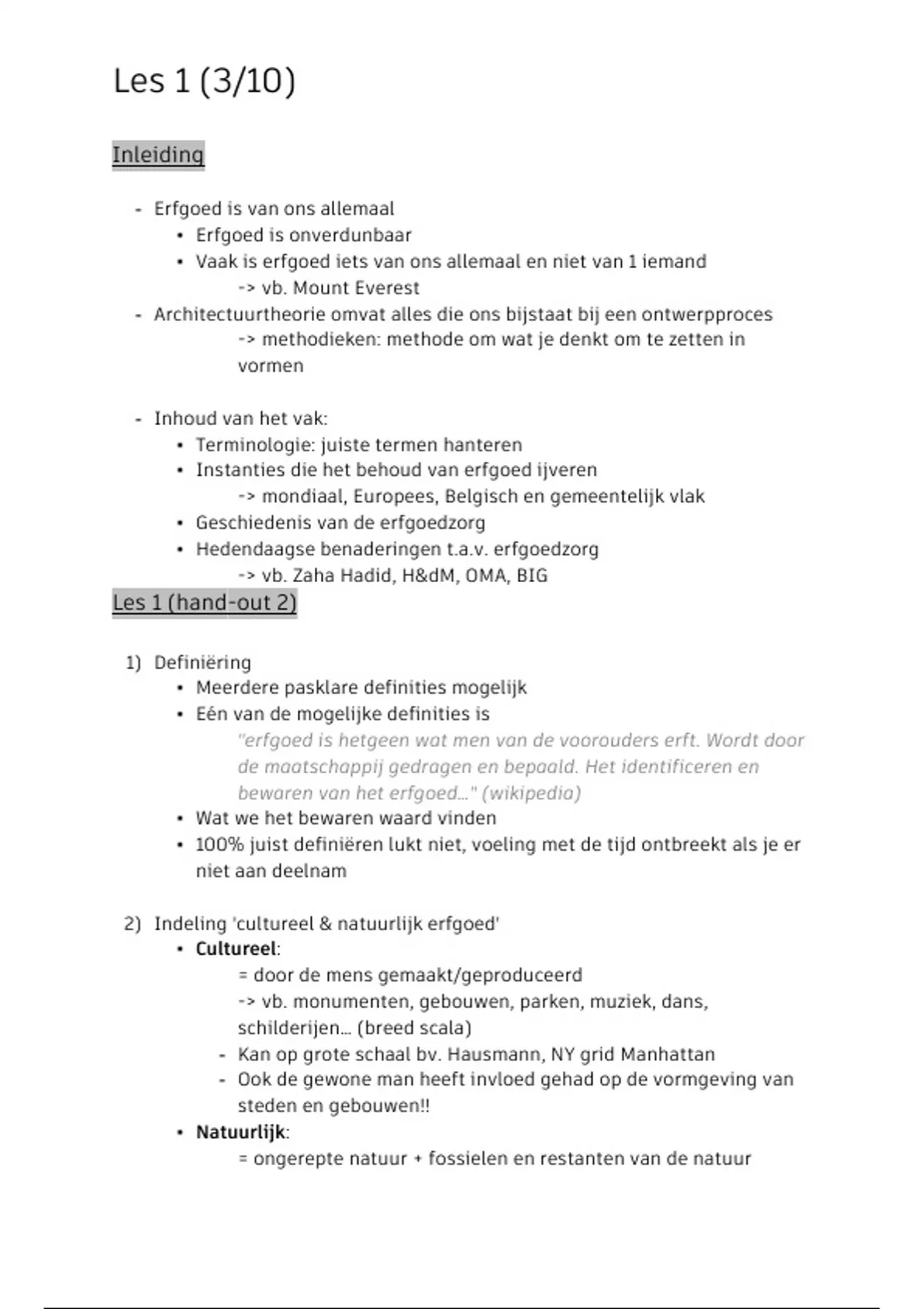 Dit document bevat de nota van tijdens de les. Deze nota in combinatie met de hand-outs van de docent zorgt voor een goede voorbereiding voor het examen
