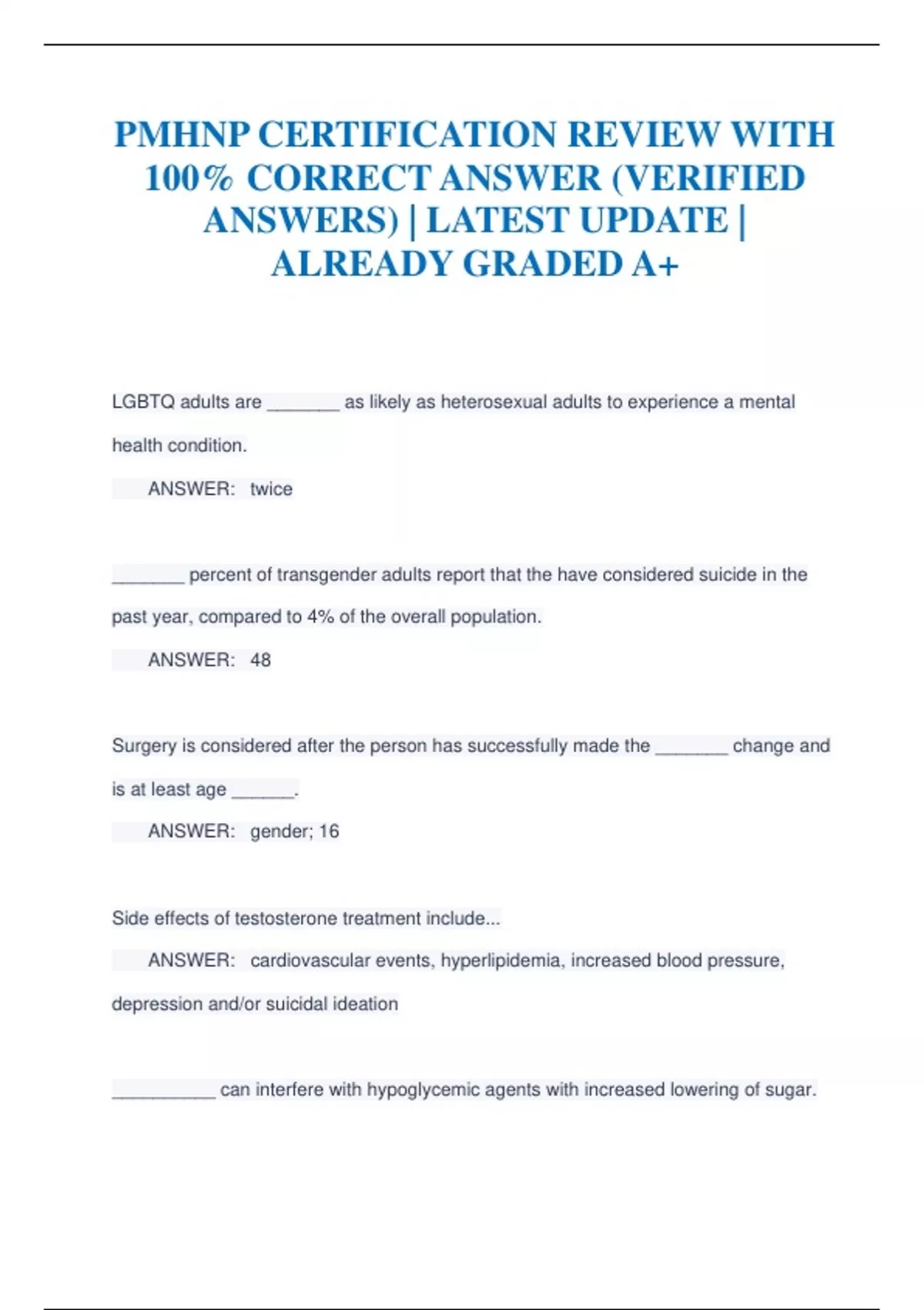 PMHNP CERTIFICATION REVIEW WITH 100% CORRECT ANSWER (VERIFIED ANSWERS) | LATEST UPDATE | ALREADY GRADED A+