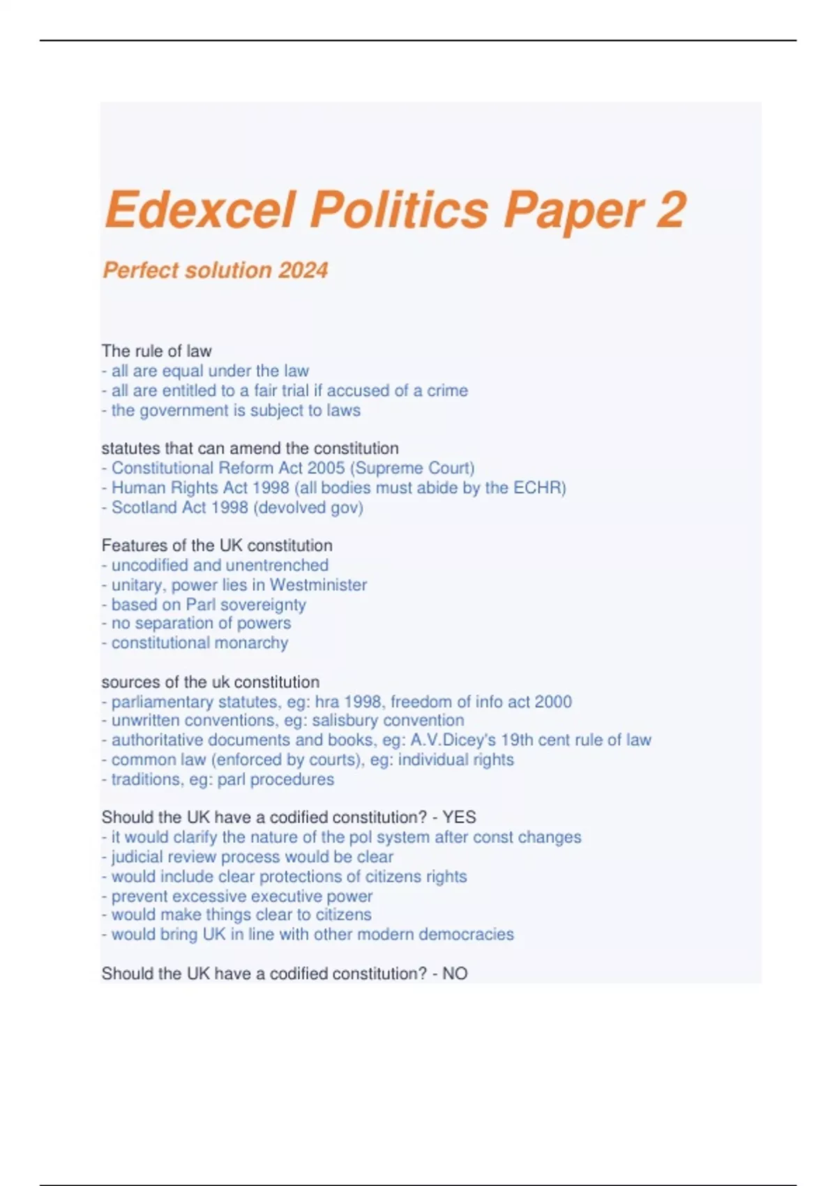 Edexcel Politics Paper 2 Perfect solution 2024