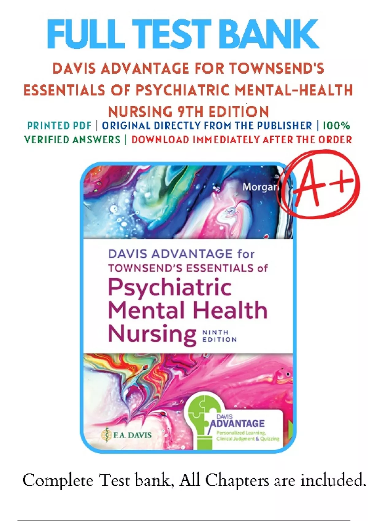 Test Bank for Davis Advantage for Townsends Essentials of Psychiatric Mental-Health Nursing 9th Edition By Karyn I. Morgan | 9781719645768 | | Chapter 1-32 | Complete Questions and Answers A+