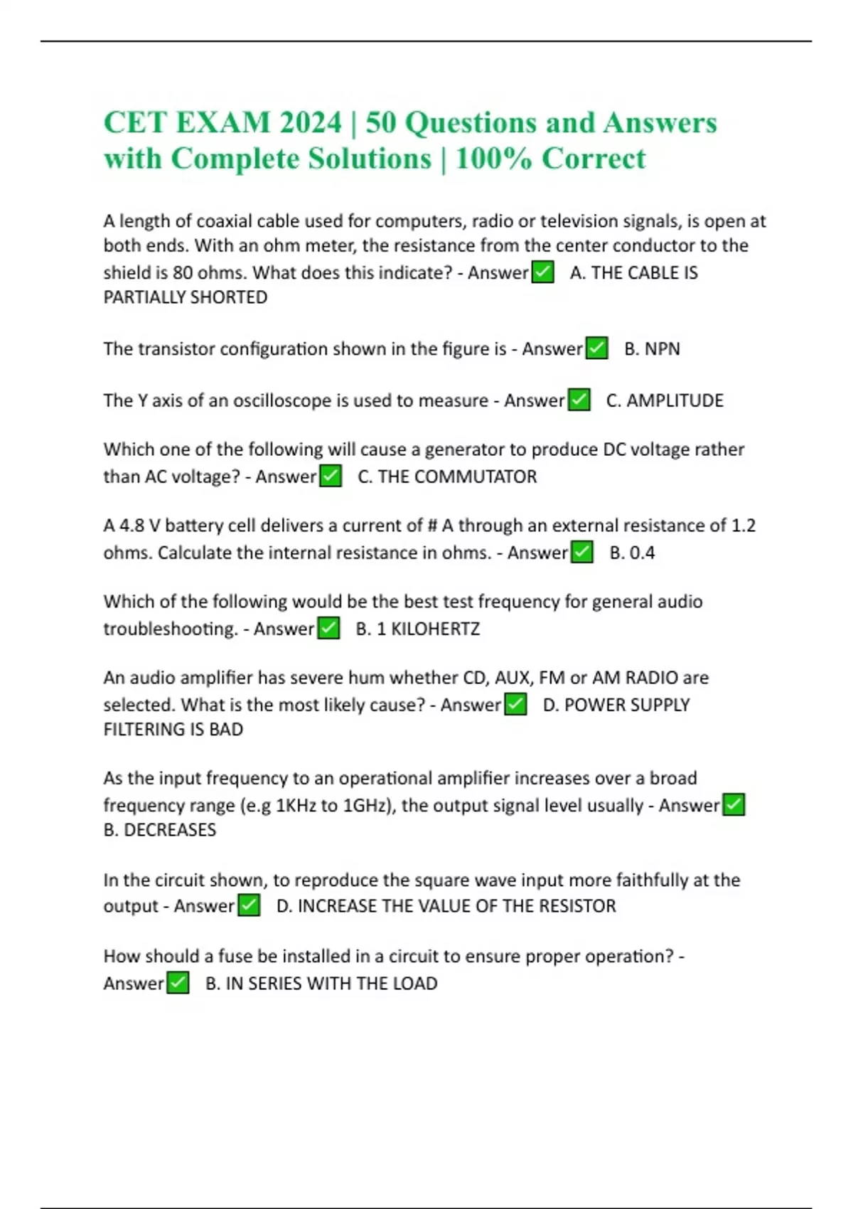 cet exam 2024 50 questions and answers with comp