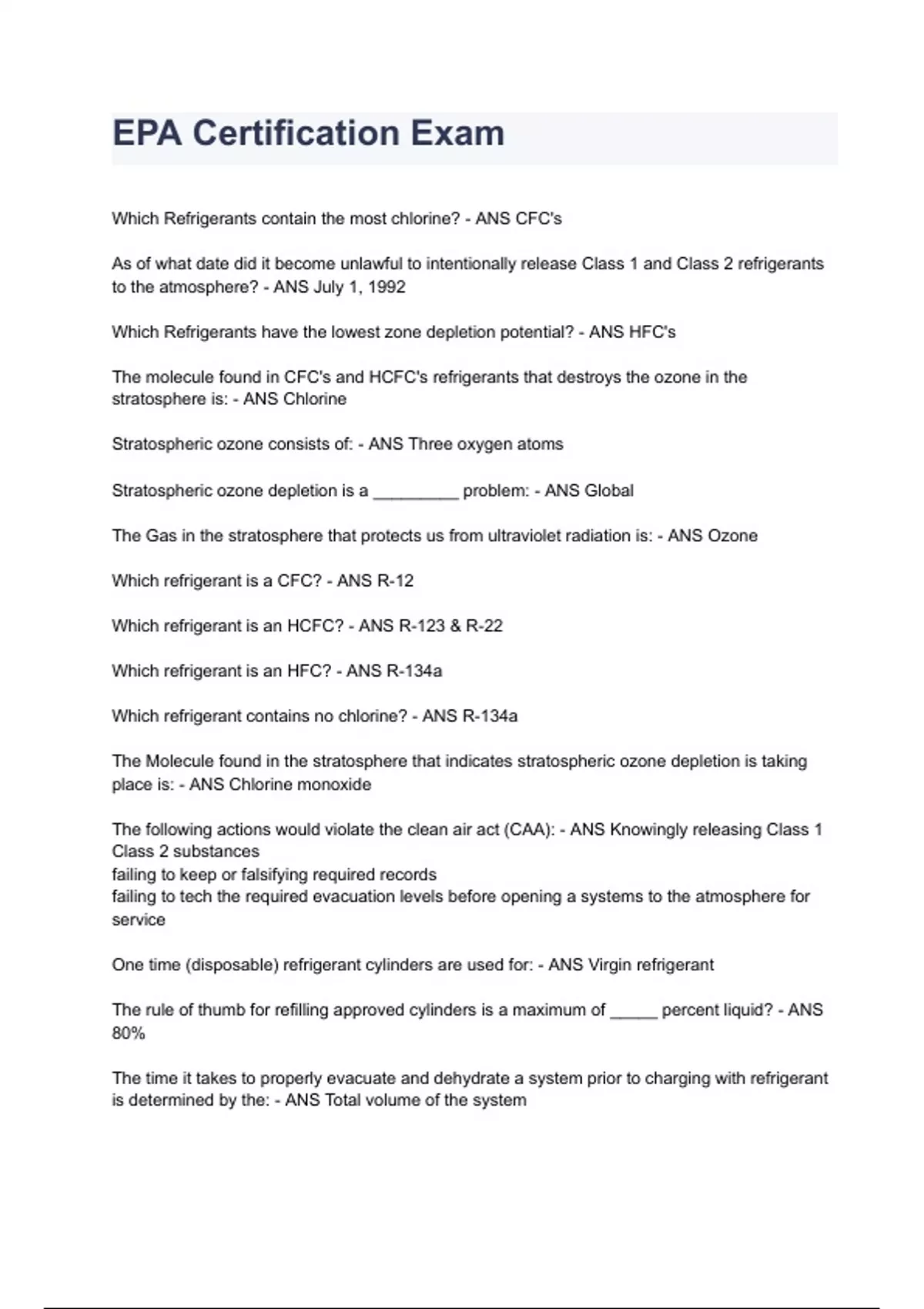 EPA Certification Exam 2024 Questions With Completed Solutions.
