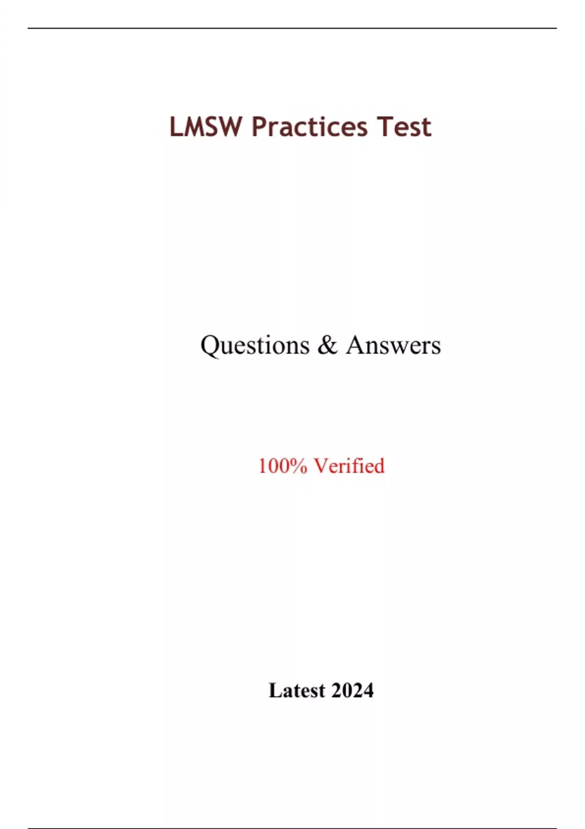 LMSW Practices Test - Questions & Answers (98% Verified) - Latest 2024