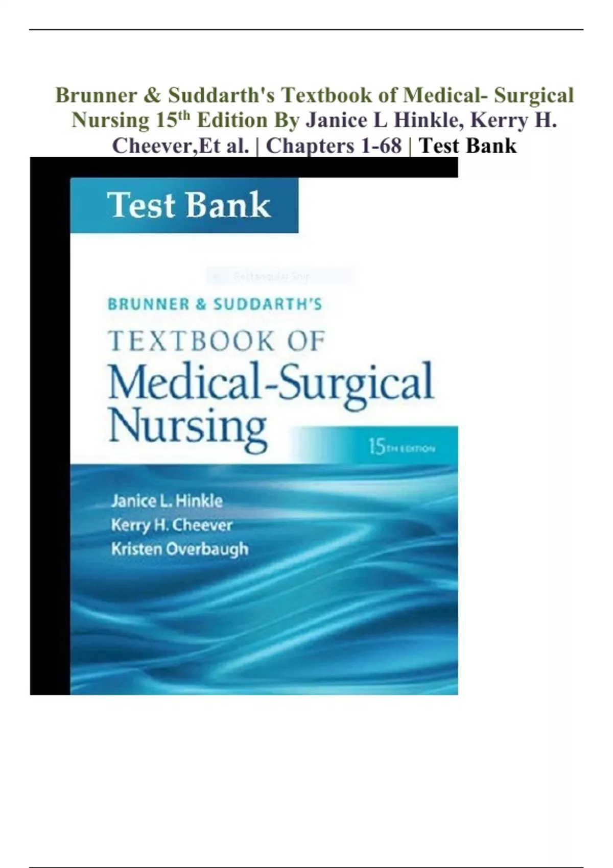 Brunner & Suddarth's Textbook of Medical-Surgical Nursing 15th Edition By Janice L Hinkle, Kerry Test Bank - Q&A with Rationale (Graded A+) - 2024 Version