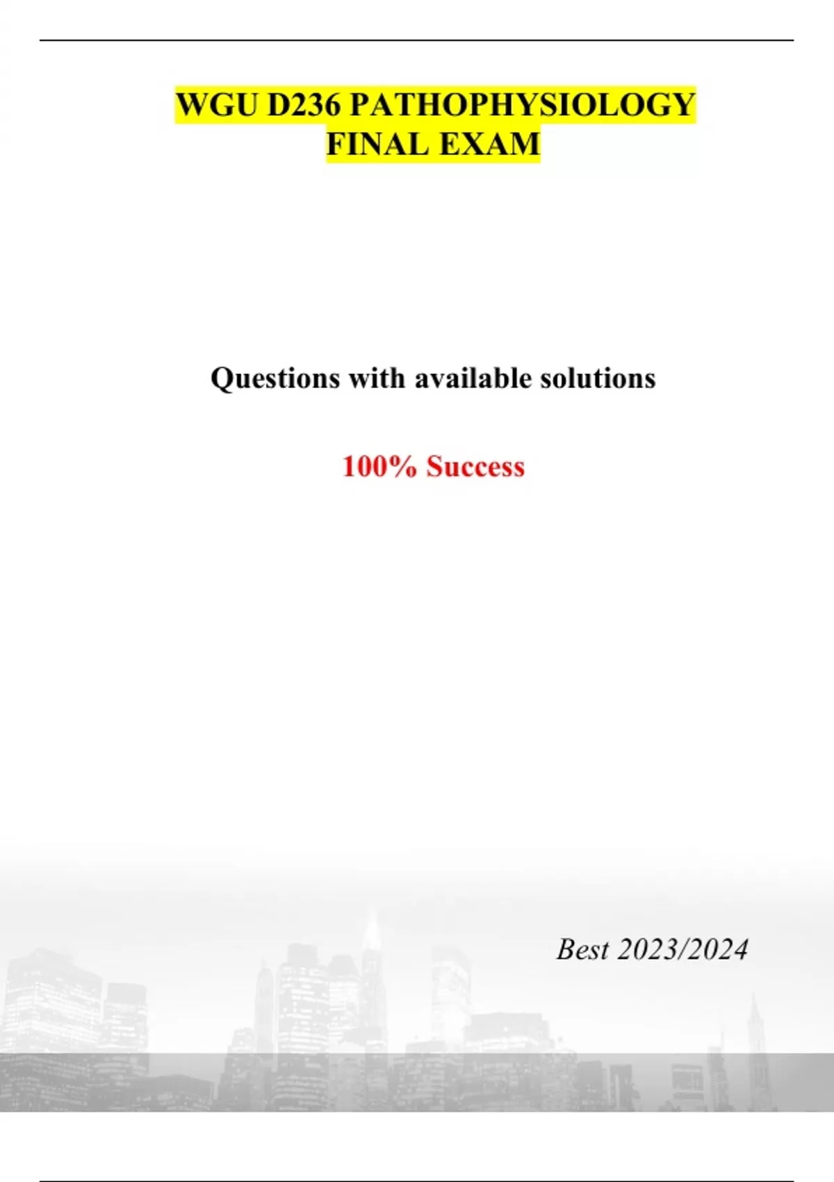 WGU D236 PATHOPHYSIOLOGY FINAL EXAM - Questions & Answers (Graded 97%) - Best 2023/2024