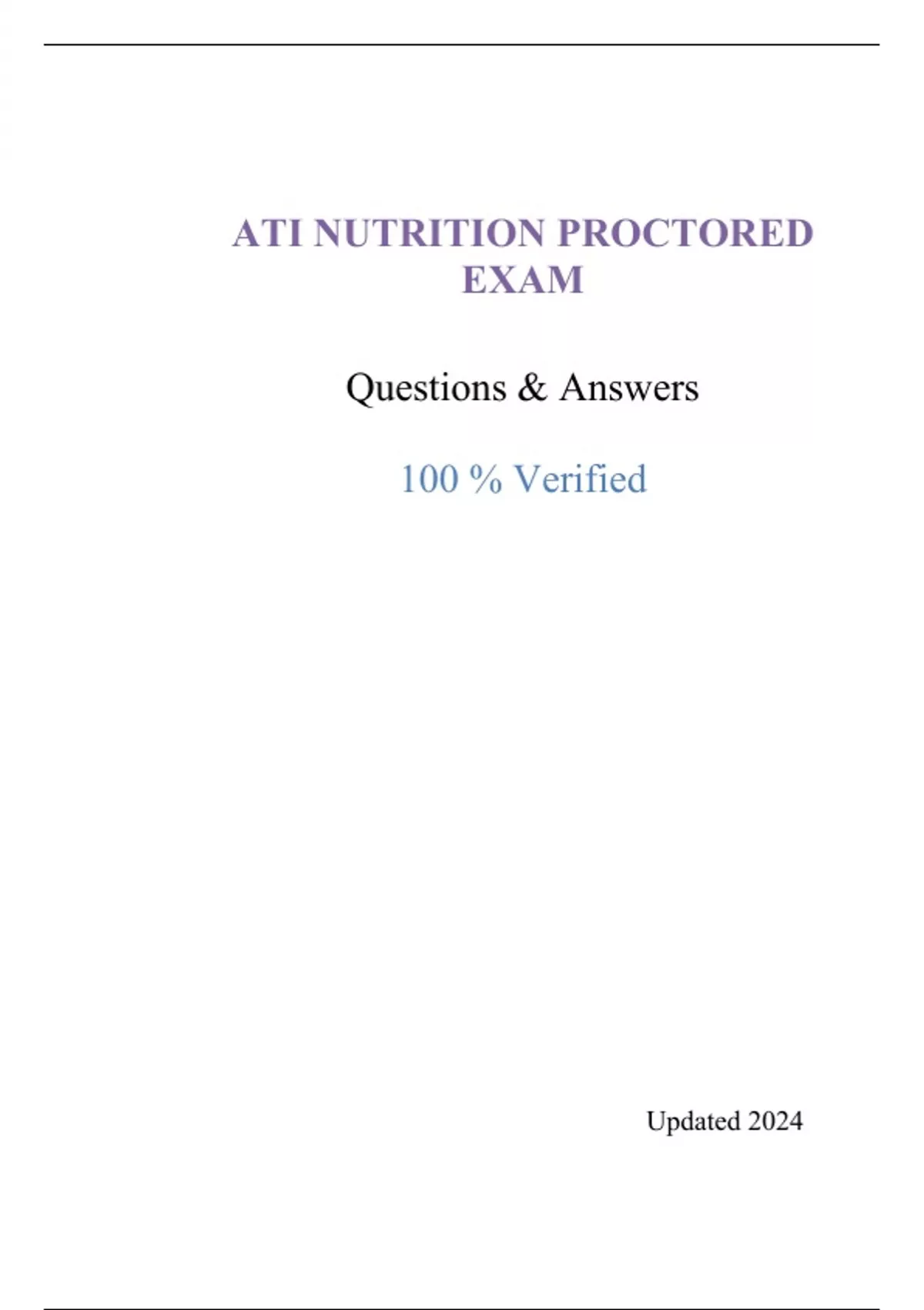ATI NUTRITION PROCTORED EXAM - Questions & Answers (Scored 98%) Latest 2024 Version.