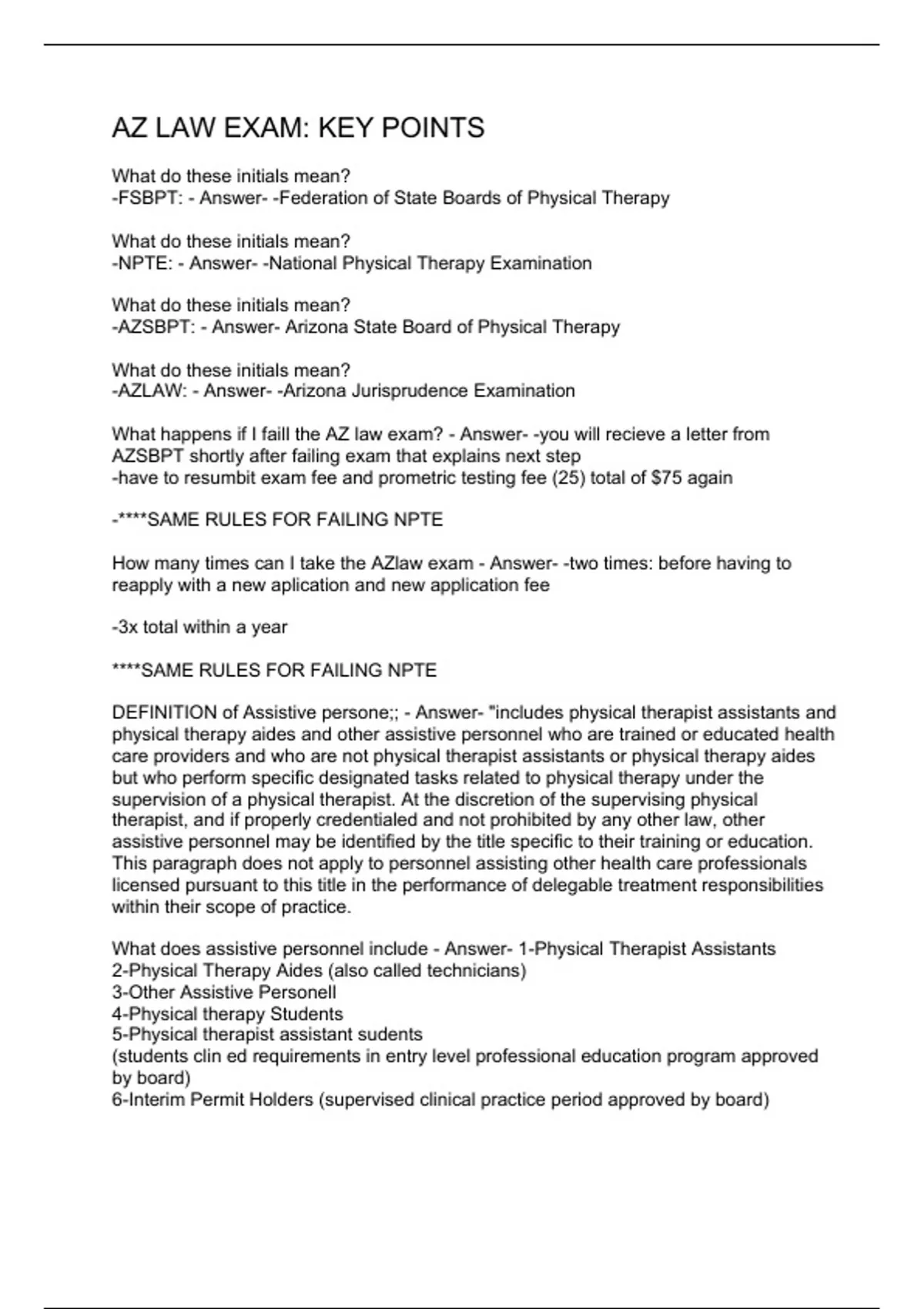 AZ LAW EXAM QUESTIONS AND ANSWERS/AZ JURISPRUDENCE EXAM QUESTIONS/AZ JURISPRUDENCE EXAM QUESTIONS/JURISPRUDENCE EXAM FOR ARIZONA STATE BOARD OF PHYSICAL THERAPY/AZ LAW EXAM: KEY POINTS/AZ JURISPRUDENCE QUESTIONS AND ANSWERS/AZ JURISPRUDENCE EXAM NUMBERS/A