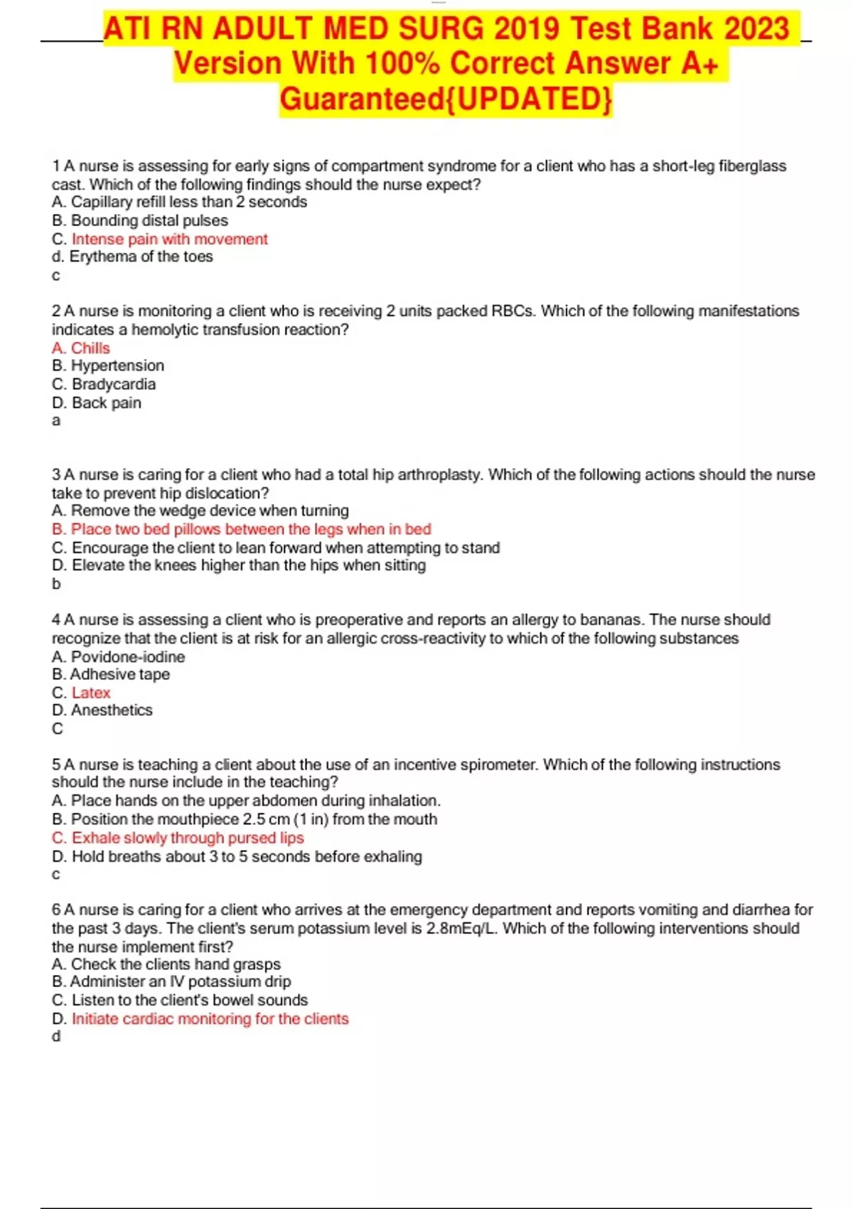 ATI RN ADULT MED SURG 2019 Test Bank 2024 Version With 100% Correct Answer A+ Guaranteed{UPDATED}