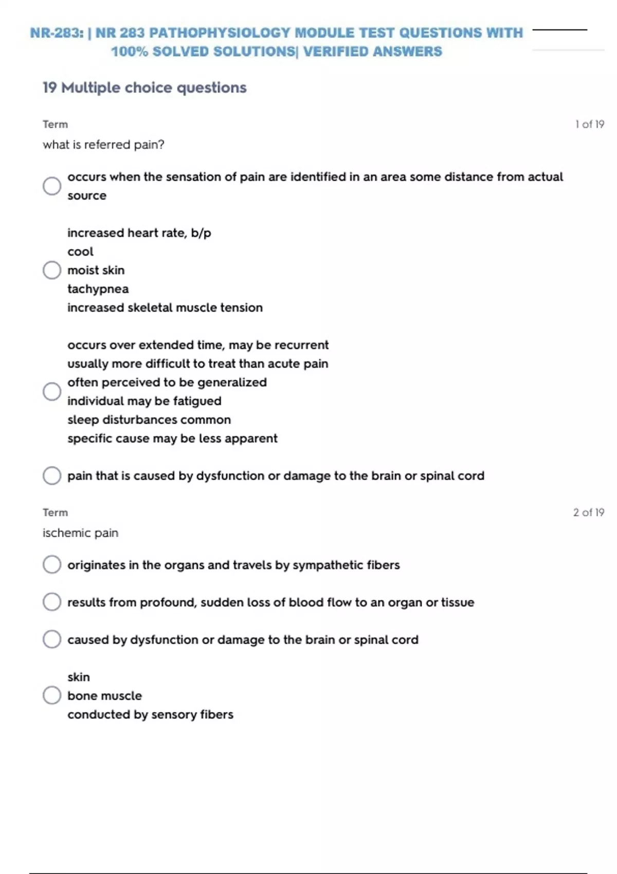 NR 283 PATHOPHYSIOLOGY PAIN QUESTIONS WITH 100% CORRECT ANSWERS