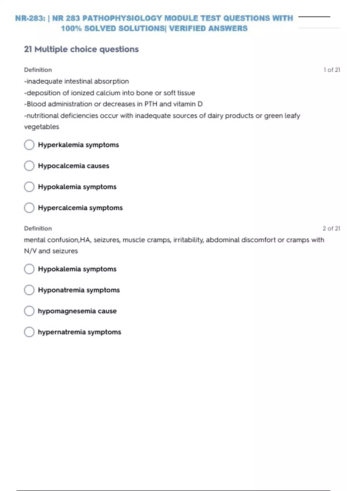 NR 283 PATHOPHYSIOLOGY FLUID, ELECTROLYTE, AND ACID-BASE IMBALANCES QUESTIONS WITH 100% SOLVED SOLUTIONS