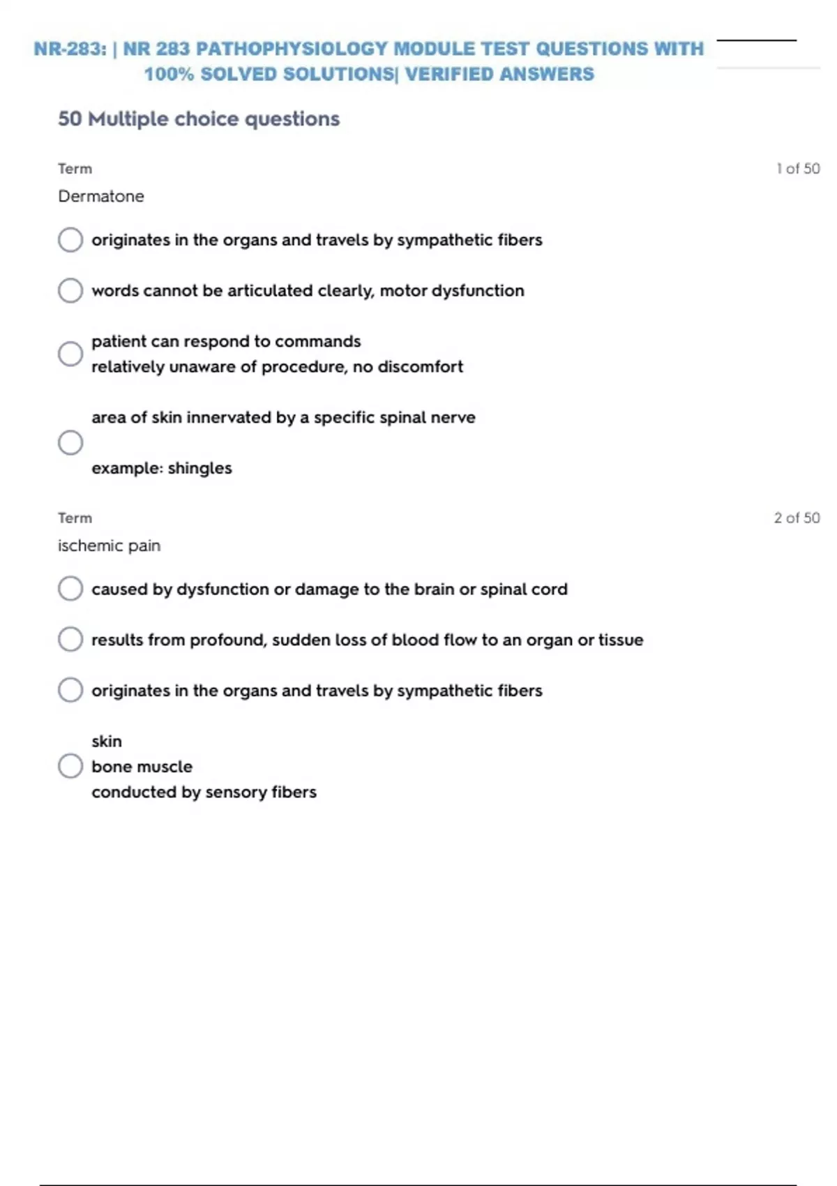 NR 283 PATHOPHYSIOLOGY PAIN QUESTIONS WITH 100% CORRECT ANSWERS