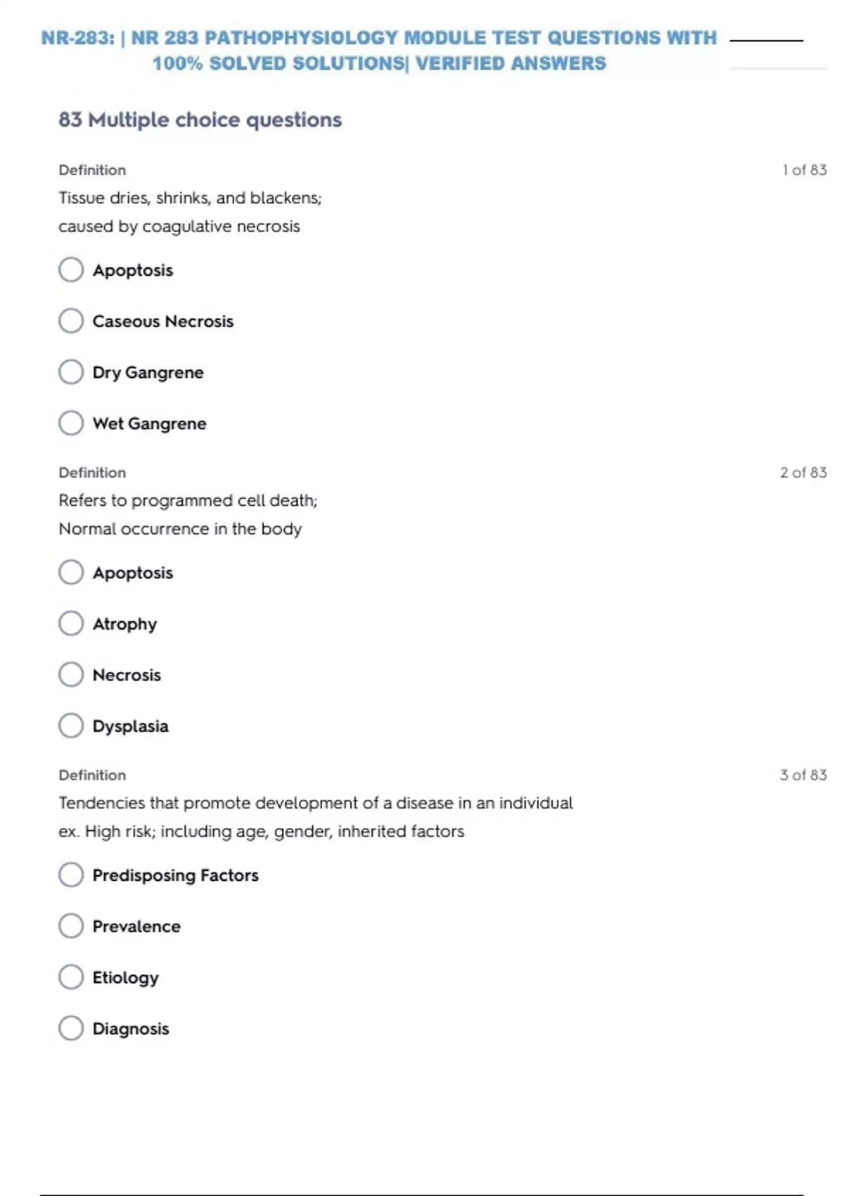 NR 283 INTRODUCTION TO PATHOPHYSIOLOGY QUESTIONS WITH 100% CORRECT ANSWERS