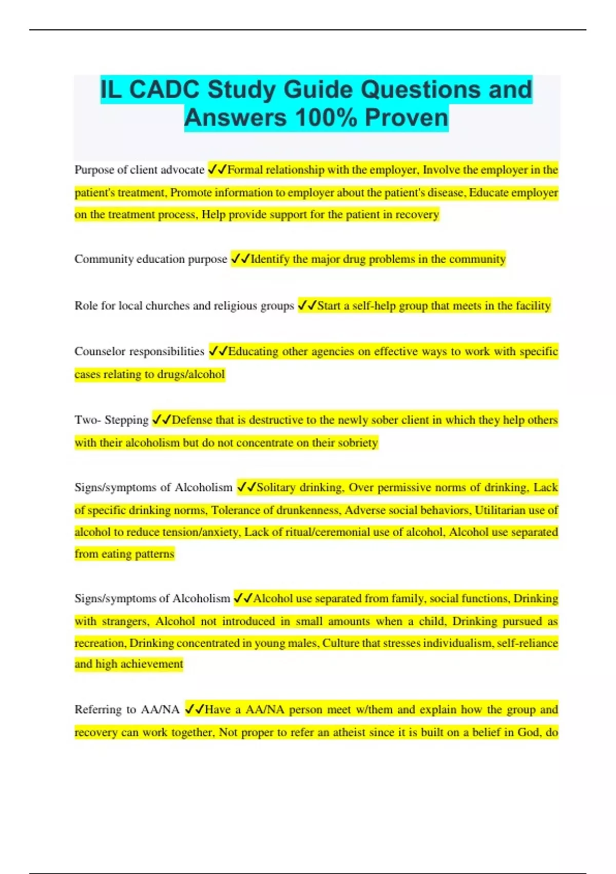 Purpose of client advocate Formal relationship with the employer, Involve the employer in the patient's treatment, Promote information to employer about the patient's disease, Educate employer on the treatment process, Help provide support for the patient in recovery Community education purpose Identify the major drug problems in the community Role for local churches and religious groups Start a self-help group that meets in the facility Counselor responsibilities Educating other agencies on effective ways to work with specific cases relating to drugs/alcohol Two- Stepping Defense that is destructive to the newly sober client in which they help others with their alcoholism but do not concentrate on their sobriety Signs/symptoms of Alcoholism Solitary drinking, Over permissive norms of drinking, Lack of specific drinking norms, Tolerance of drunkenness, Adverse social behaviors, Utilitarian use of alcohol to reduce tension/anxiety, Lack of ritual/ceremonial use of alcohol, Alcohol use separated from eating patterns Signs/symptoms of Alcoholism Alcohol use separated from family, social functions, Drinking with strangers, Alcohol not introduced in small amounts when a child, Drinking pursued as recreation, Drinking concentrated in young males, Culture that stresses individualism, self-reliance and high achievement Referring to AA/NA Have a AA/NA person meet w/them and explain how the group and recovery can work together, Not proper to refer an atheist since it is built on a belief in God, do