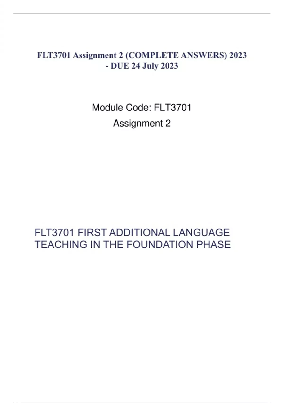 FLT3701 FIRST ADDITIONAL LANGUAGE TEACHING