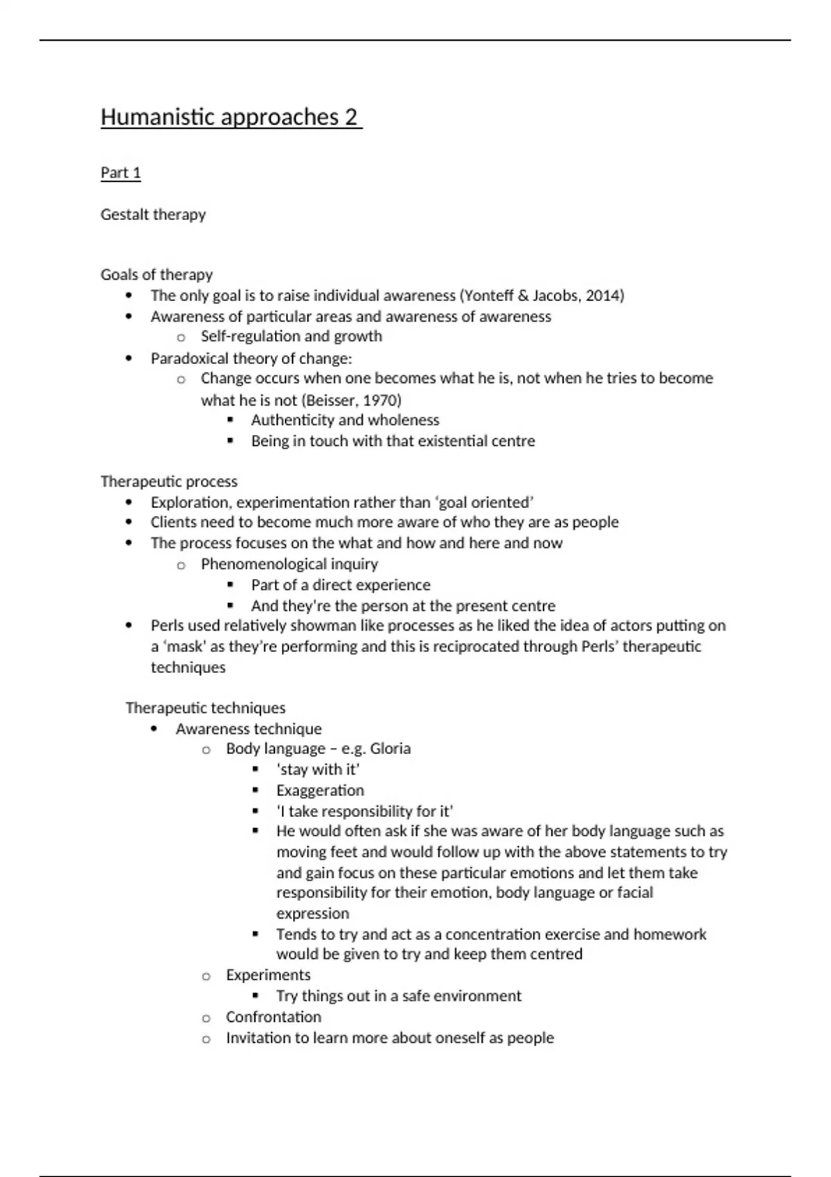 Summary Humanistic Approaches Part 2 Notes