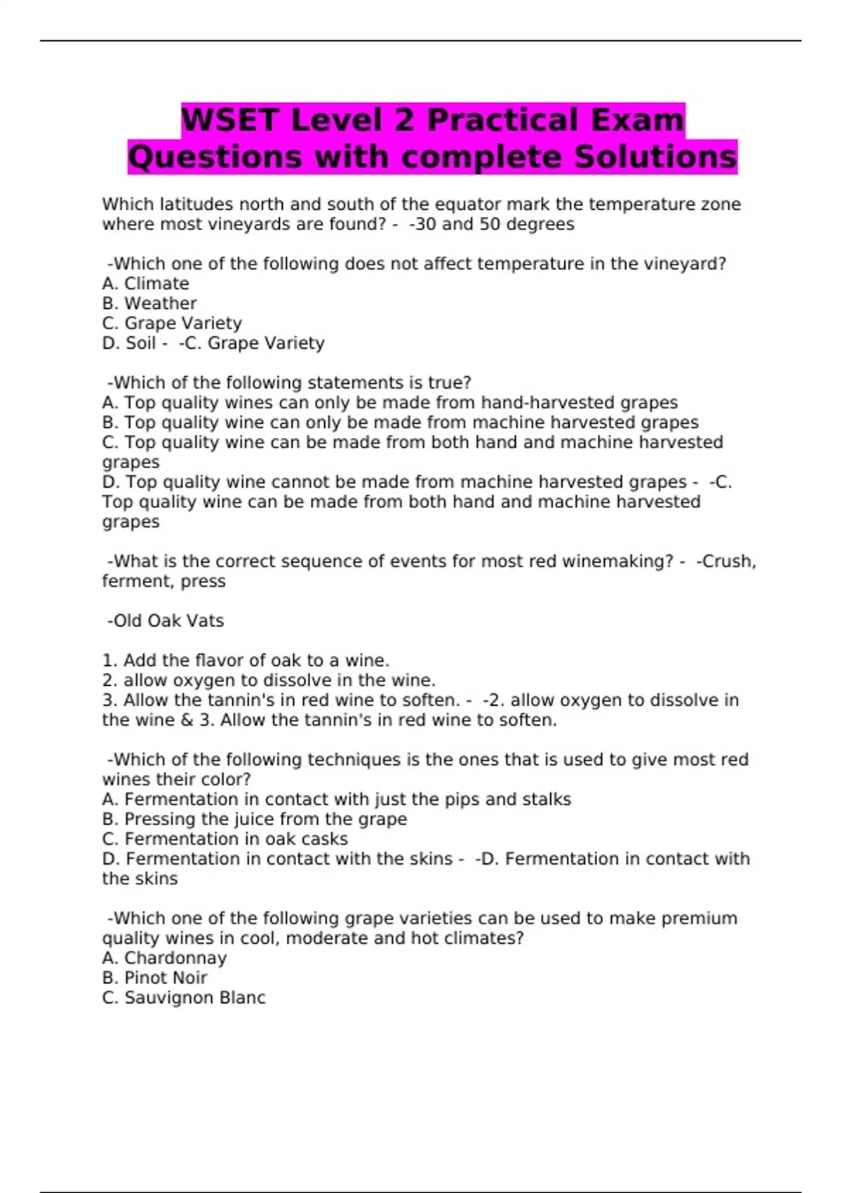 WSET Level 2 Practical Exam Questions with complete Solutions