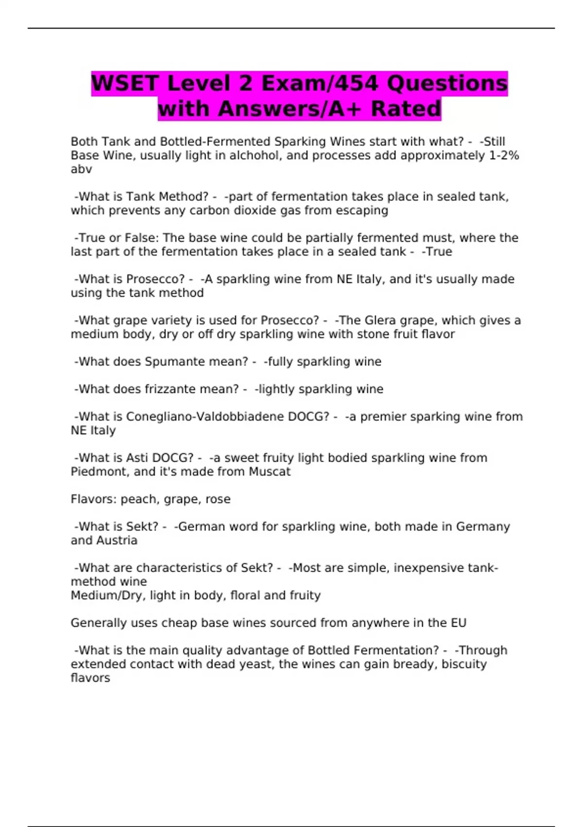wset level 2 exam454 questions with answersa ra