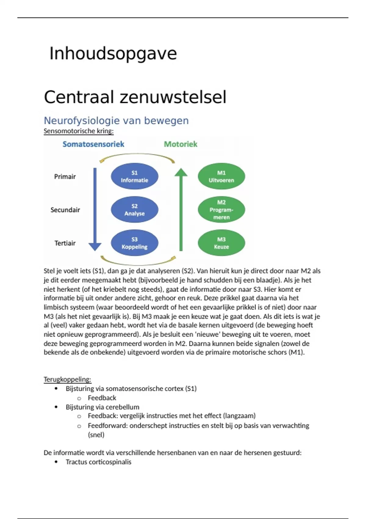 bekende als de onbekende) uitgevoerd worden via de primaire motorische schors (M1).