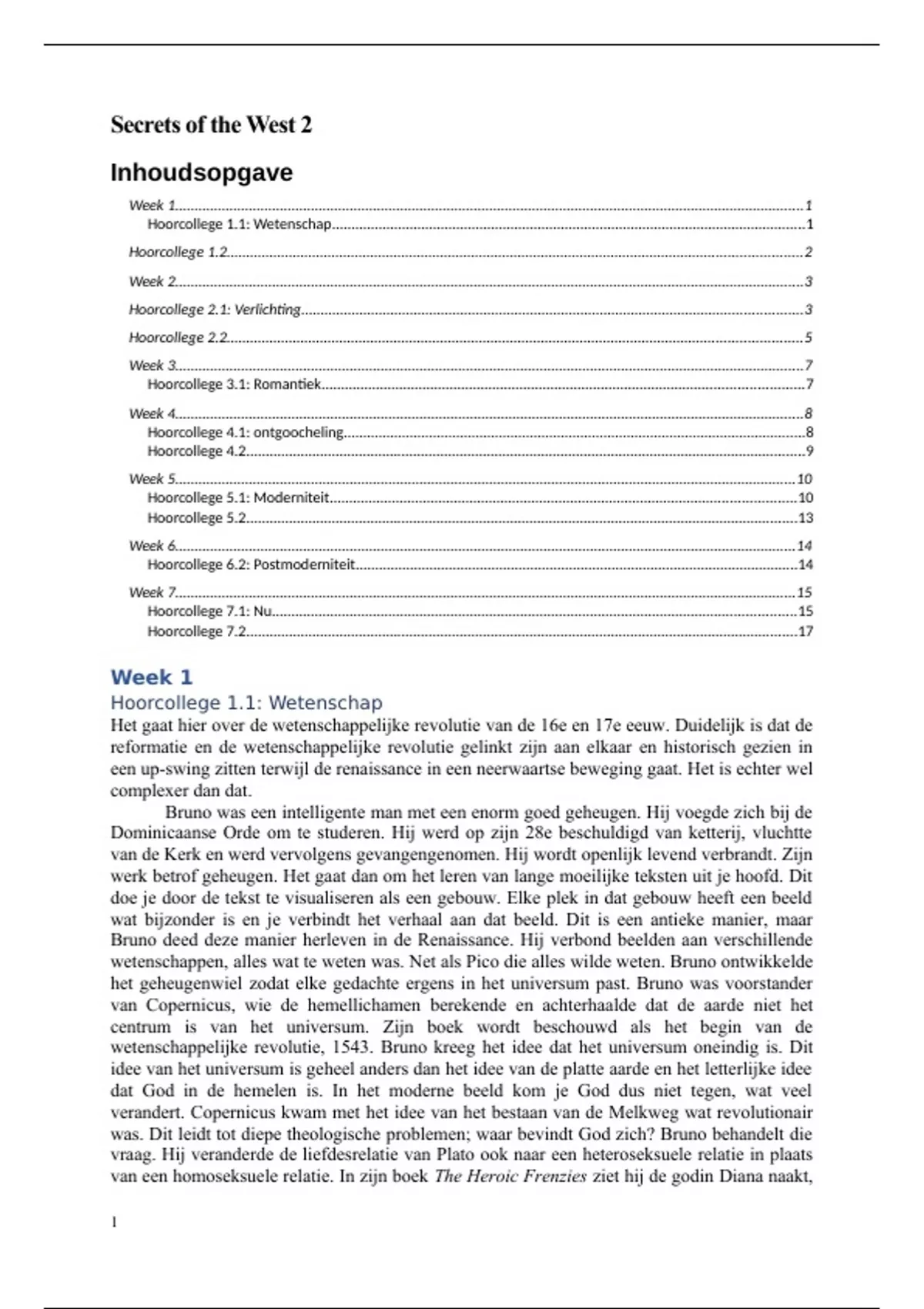 Dit document bevat alle hoorcollege aantekeningen voor het vak Secrets of the West 2, met uitzondering van hoorcollege 3.2 en 6.1. De aantekeningen moet je gebruiken bij de beantwoording van het take-home-tentamen.