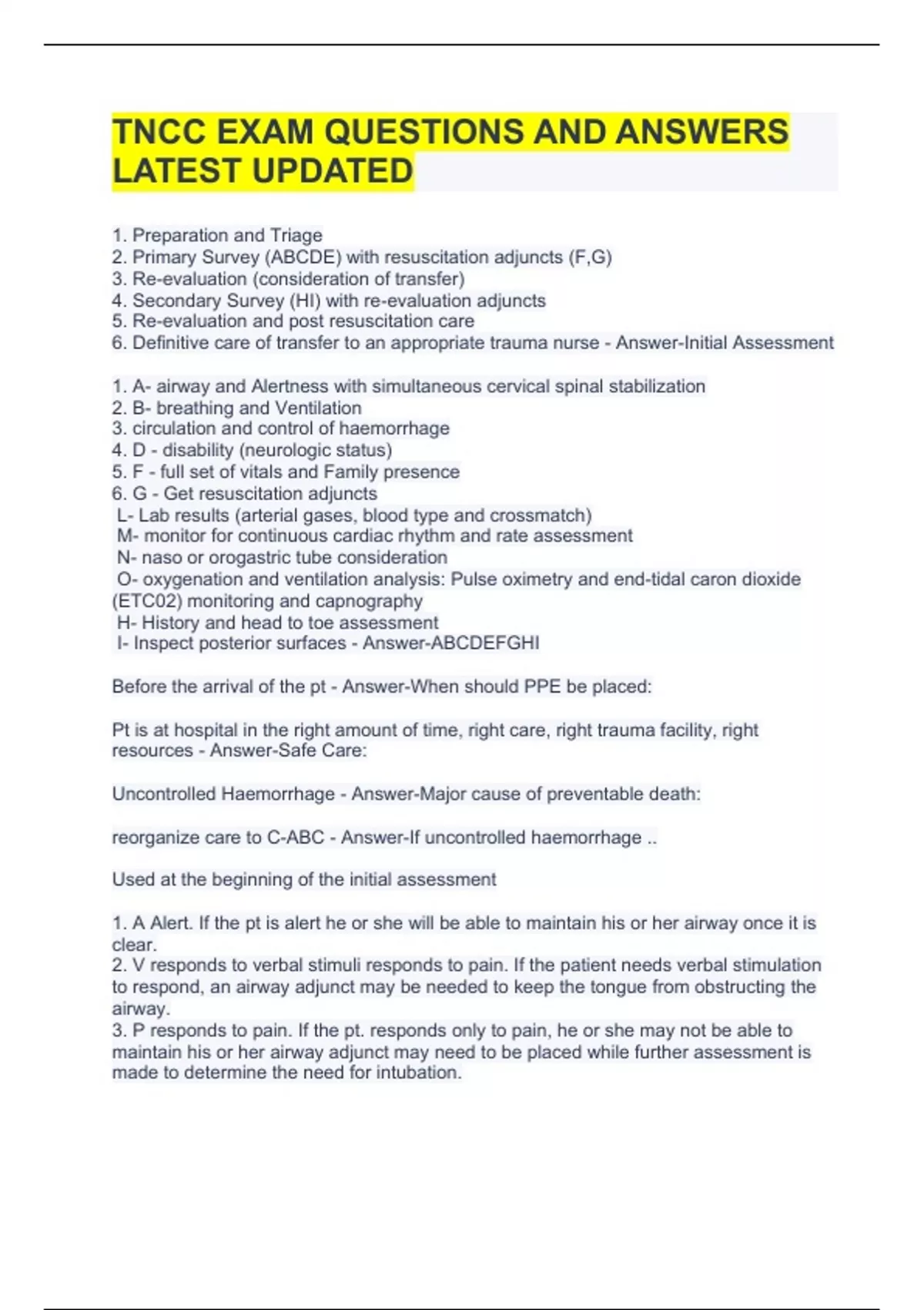 TNCC Exam Bundle ( 100% Guaranteed Pass, Graded A+)