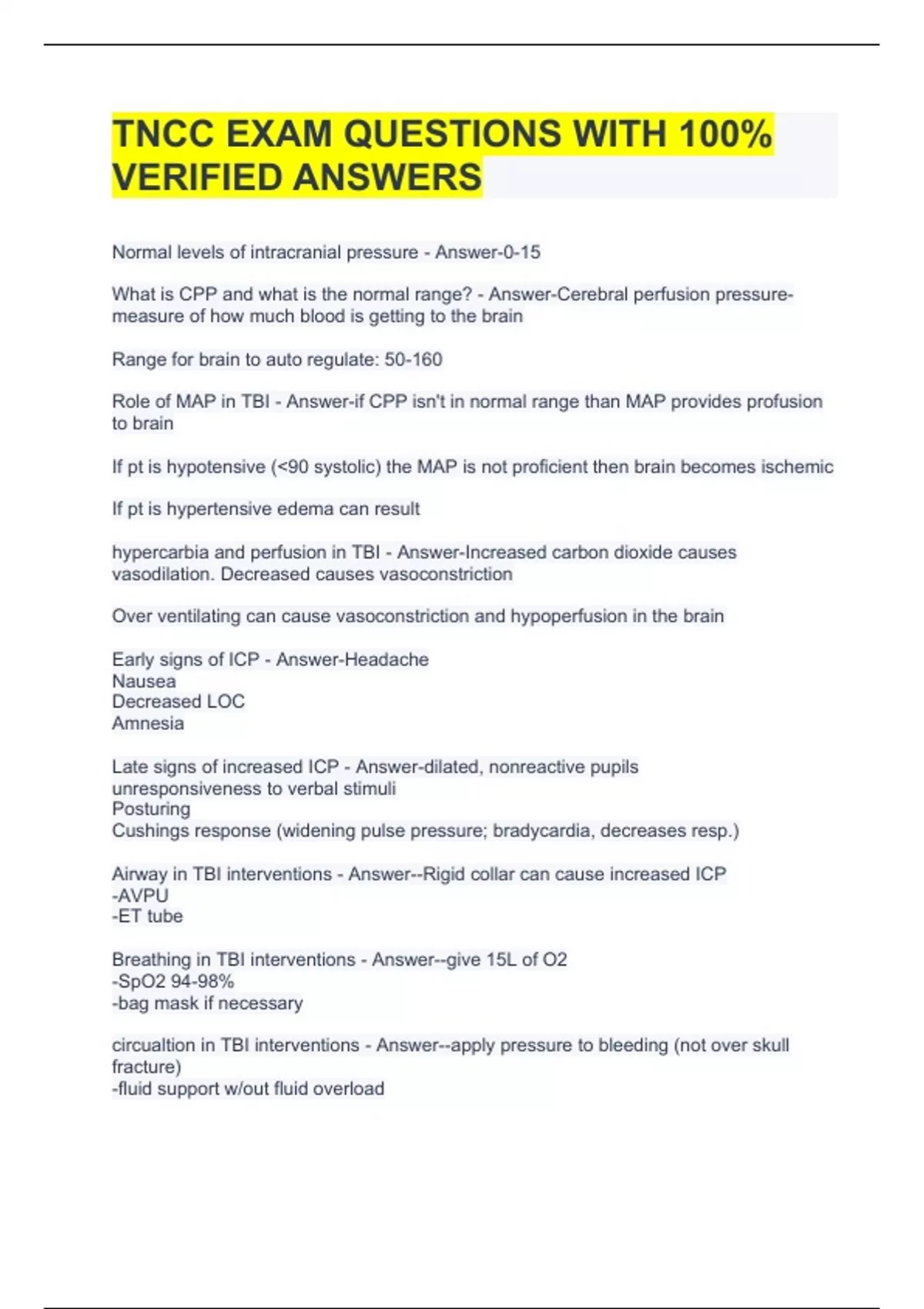 TNCC EXAM QUESTIONS WITH 100% VERIFIED ANSWERS