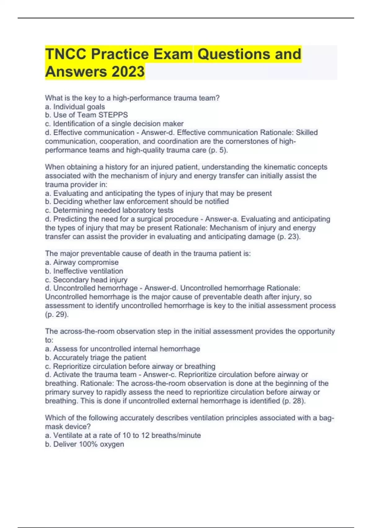 TNCC Practice Exam Questions and