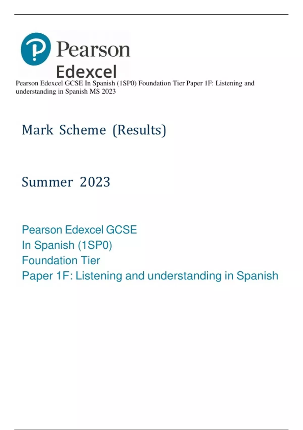 Pearson Edexcel GCSE In Spanish (1SP0) Foundation Tier Paper 1F: Listening and
