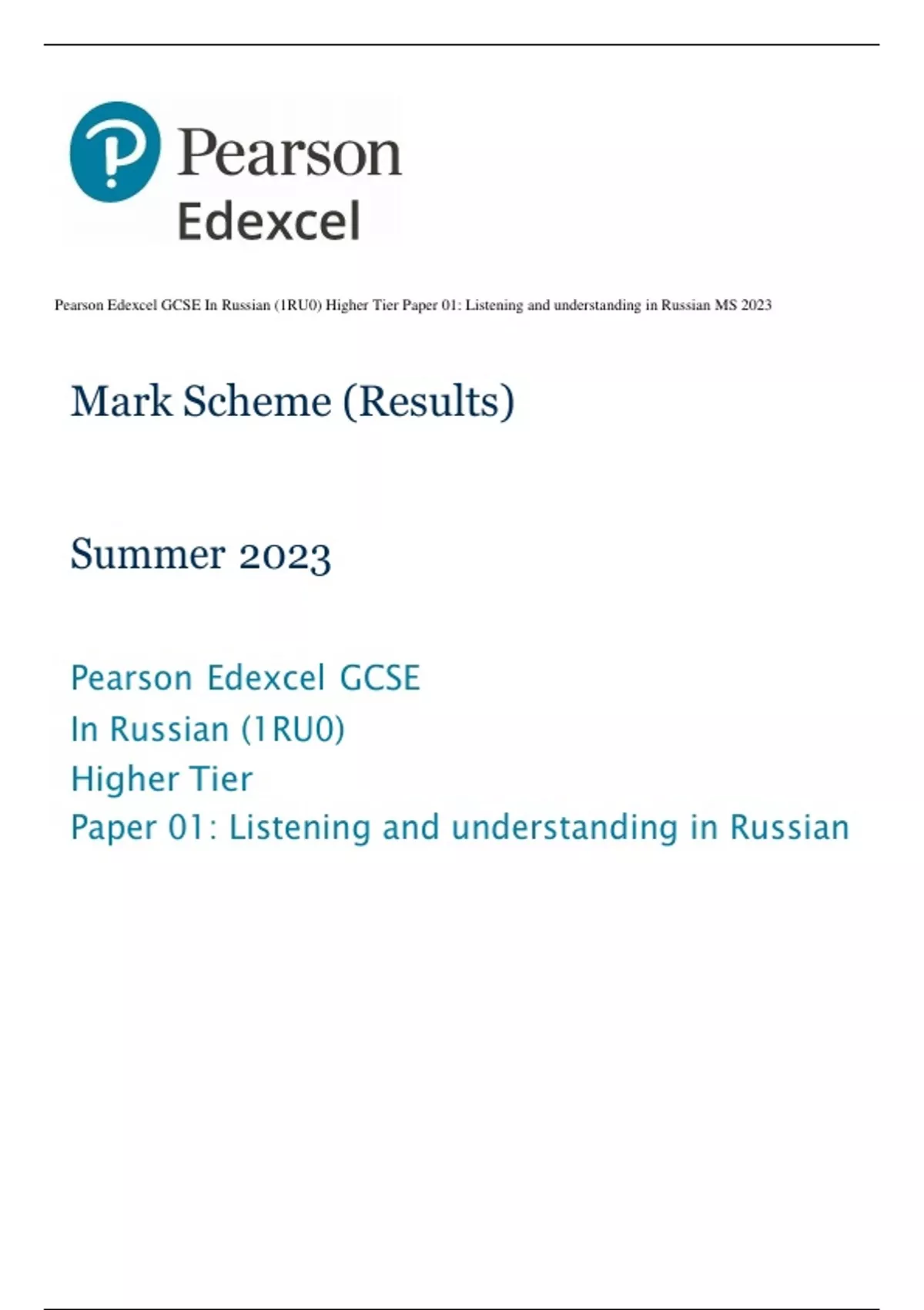Pearson Edexcel GCSE In Russian (1RU0) Higher Tier Paper 01: Listening and understanding in Russian MS 2023