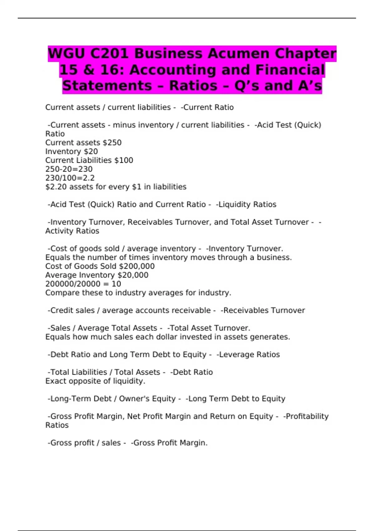 -Acid Test (Quick) Ratio and Current Ratio - -Liquidity Ratios